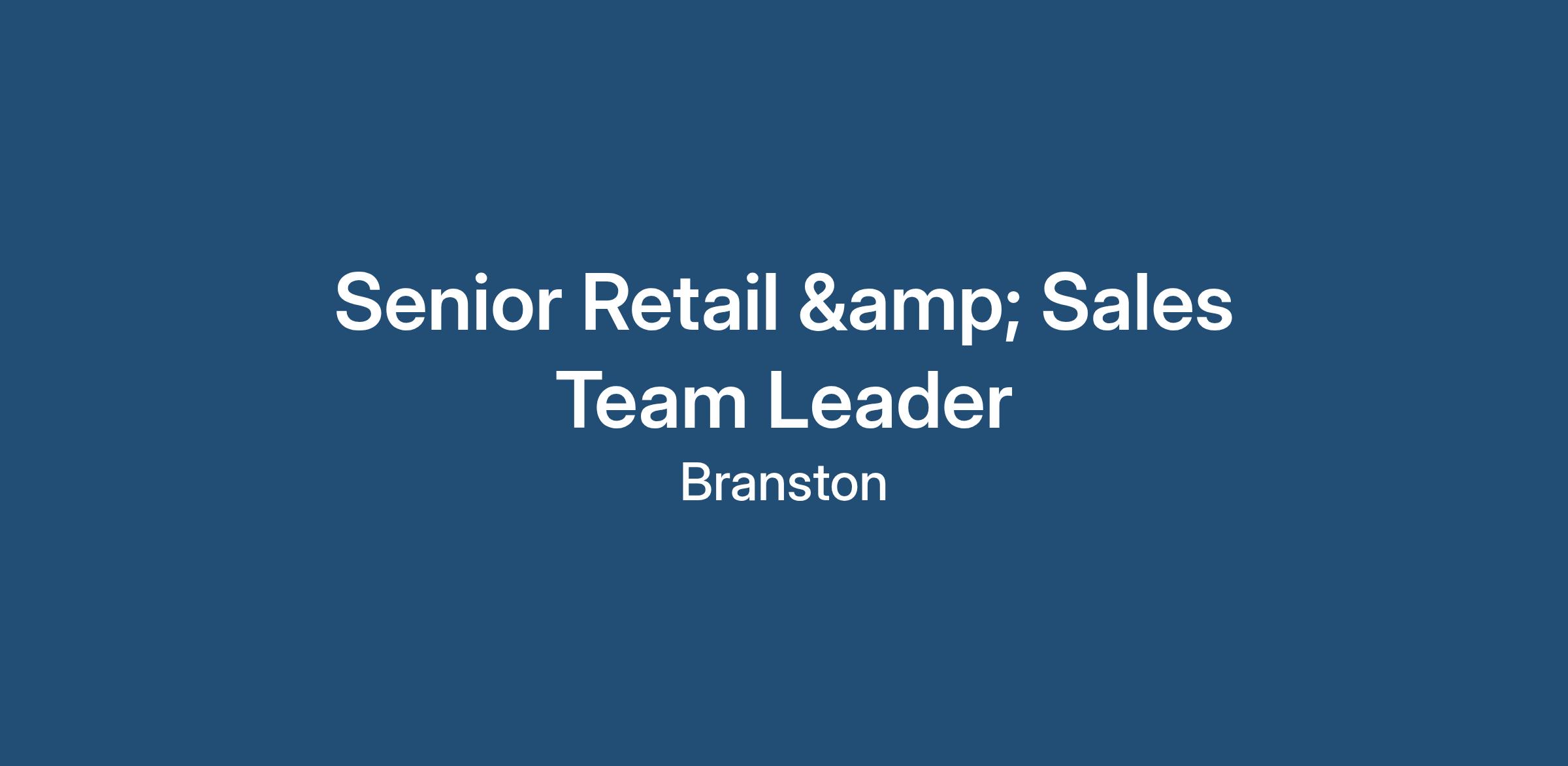 We’re looking for a Senior Retail & Sales Team Leader with: