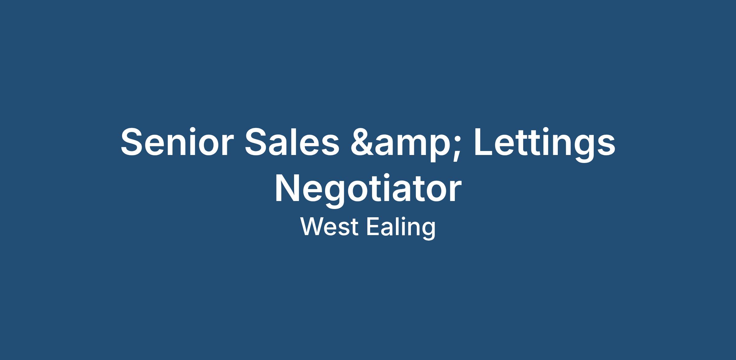 Our client, a highly respected independent estate agency with over 30 years of success in the local property market, is seeking an experienced Senior Sales & Lettings Negotiator to join their busy team based in West Ealing.