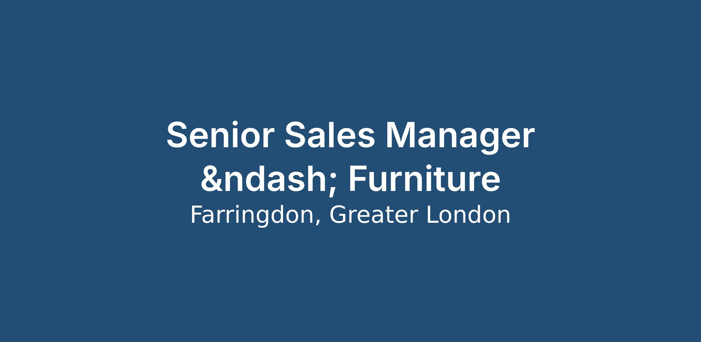 Job Title: Senior Sales Manager / Head of Sales –Furniture Solutions