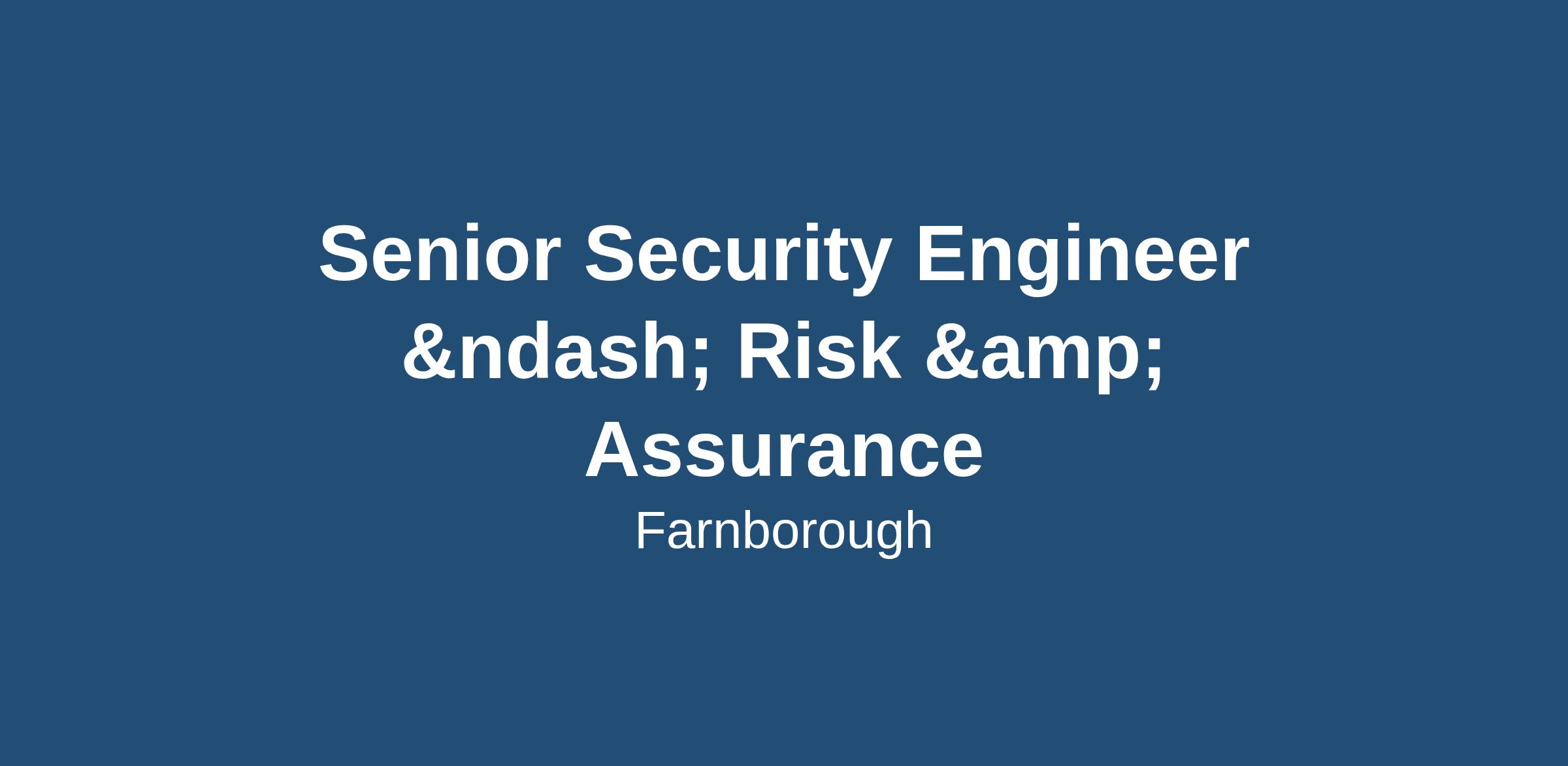 Senior Security Engineer – Risk & Assurance