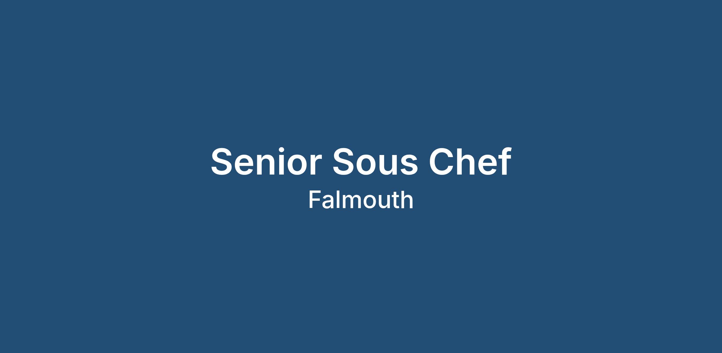 Senior Sous Chef position available in a large hotel in Falmouth.
