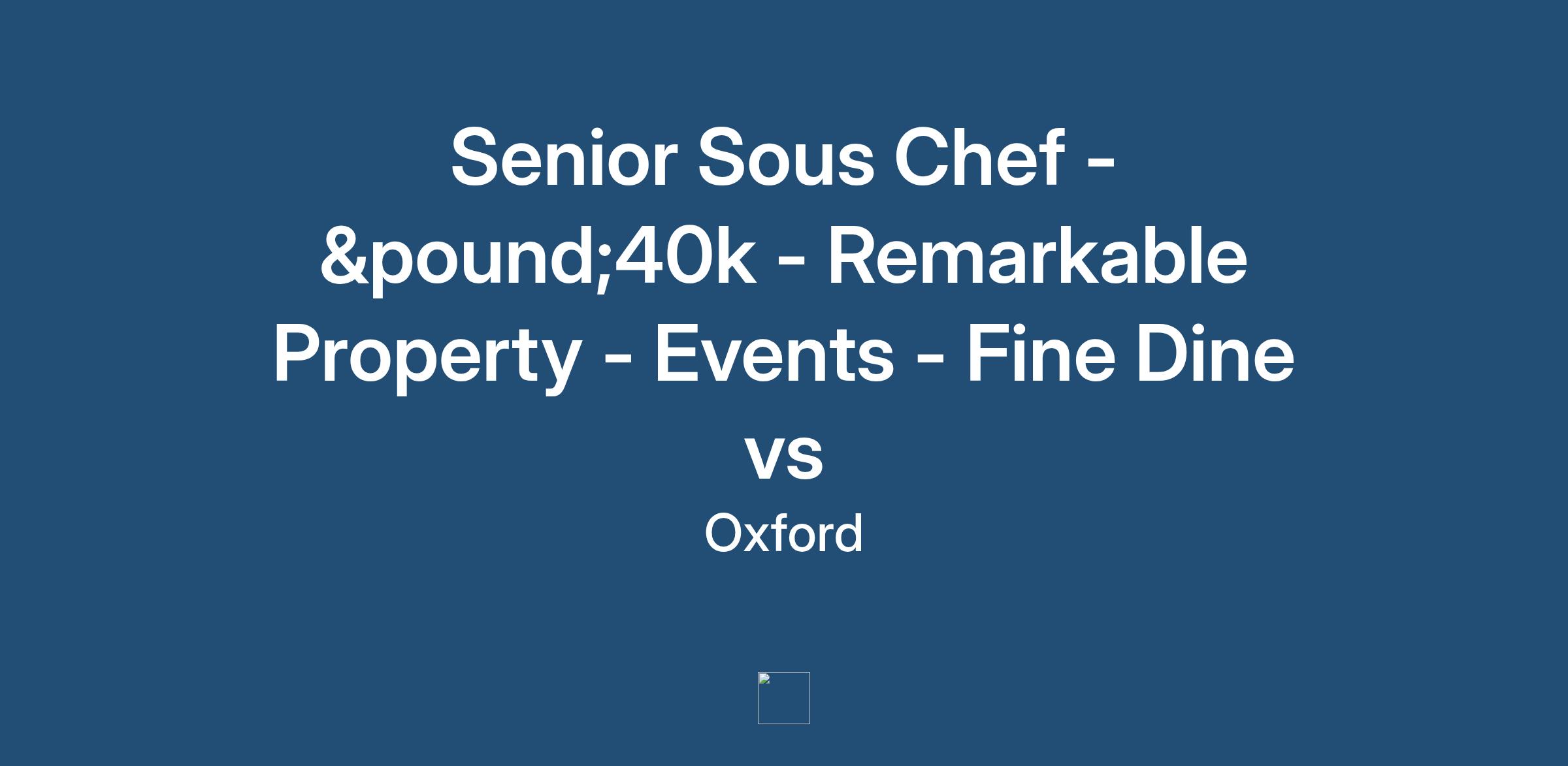 If you are interested in this Senior Sous Chef role in Oxford then please apply