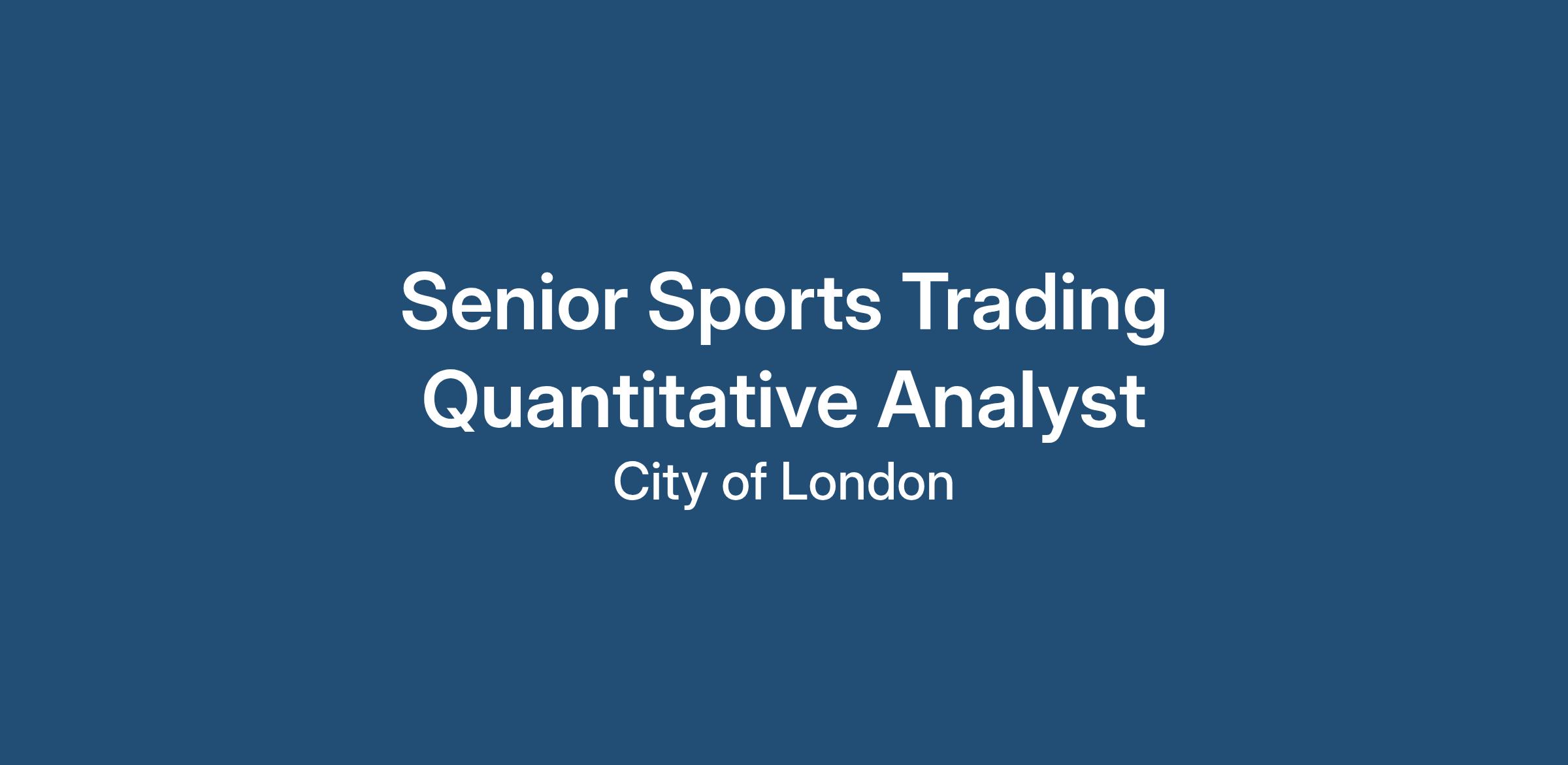 Excellent opportunity for a Senior Quantitative Analyst who is passionate about sports to join an excellent client's team based in central London. The successful Quantitative Analyst will join a small but very talented team and will be expected to interpret, filter, and analyse very large data sets whilst working closely with other analysts and developers.
