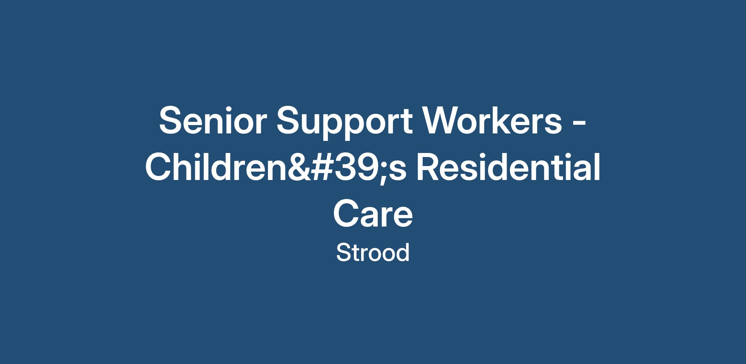 Job Title: Senior Support Workers - Children's Residential Care