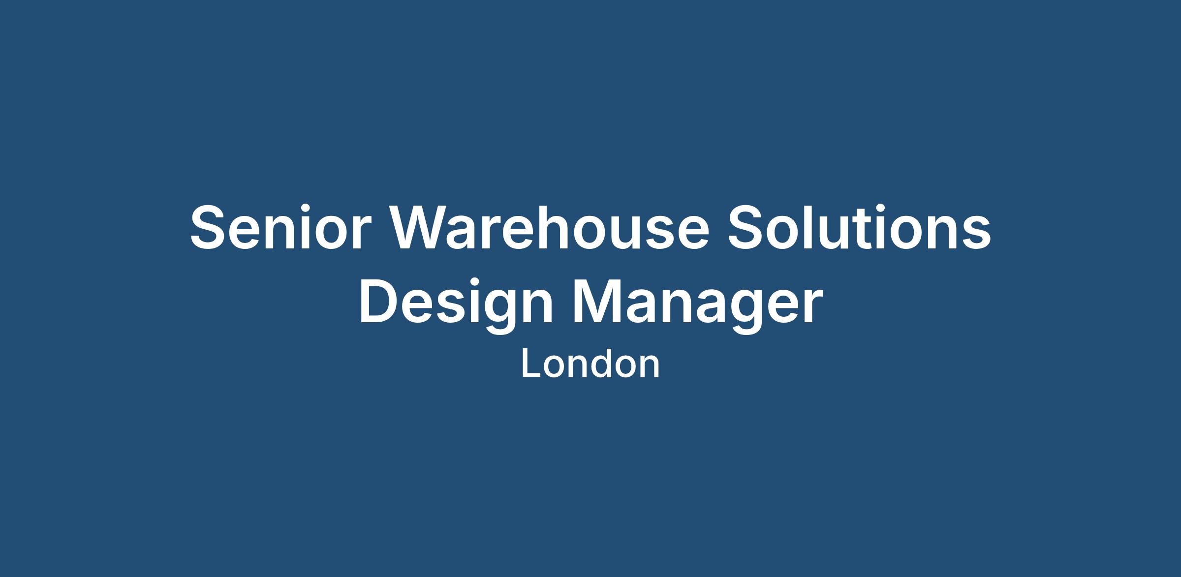 Hybrid with some time in London/ UK sites and European travel.If you are an experienced Senior Warehouse Solutions Design Manager looking for a new challenge, we encourage you to apply today