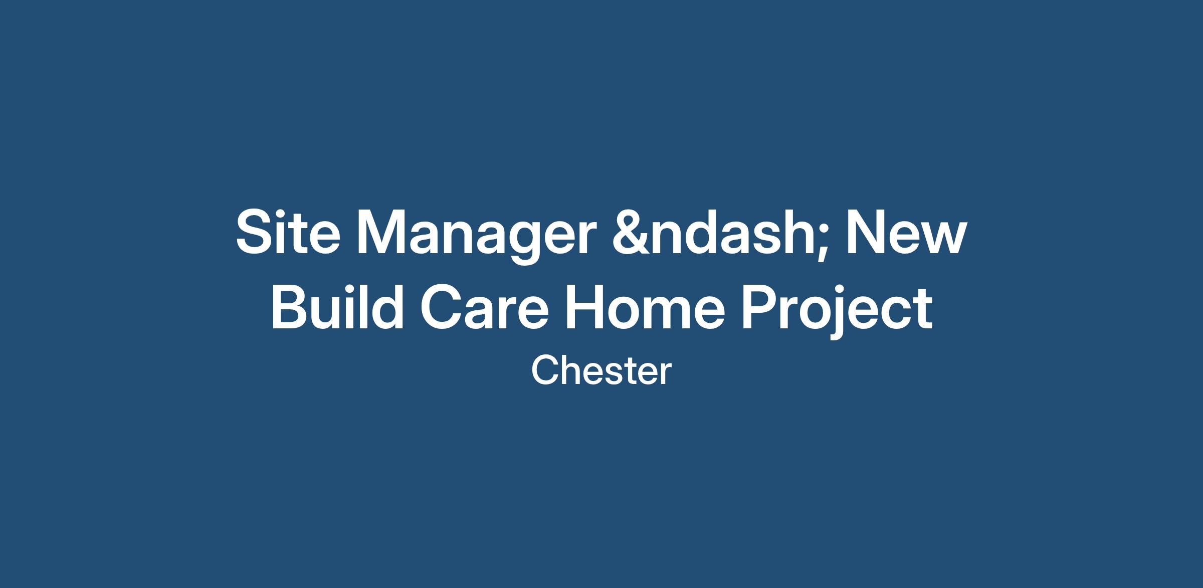 They have recently secured a new build care home project in Chester with an approximate duration of 12 months and they require a No.1 Site Manager to take day to day responsibility for the project, supported by a Project Manager and a roving Contracts Manager.