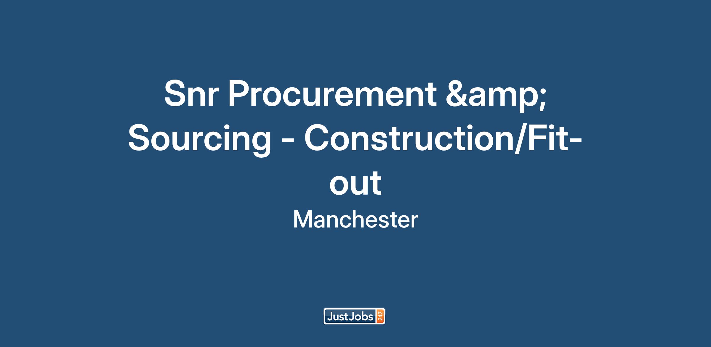 The Snr Sourcing Lead - Construction & Fitout role in Manchester/Leeds/London/Nottingham requires expertise across complex procurement and sourcing within indirects. Industry agnostic but a bias towards: retail, financial services. The successful candidate will lead sourcing strategies and deliver cost-effective solutions that align with organisational goals.