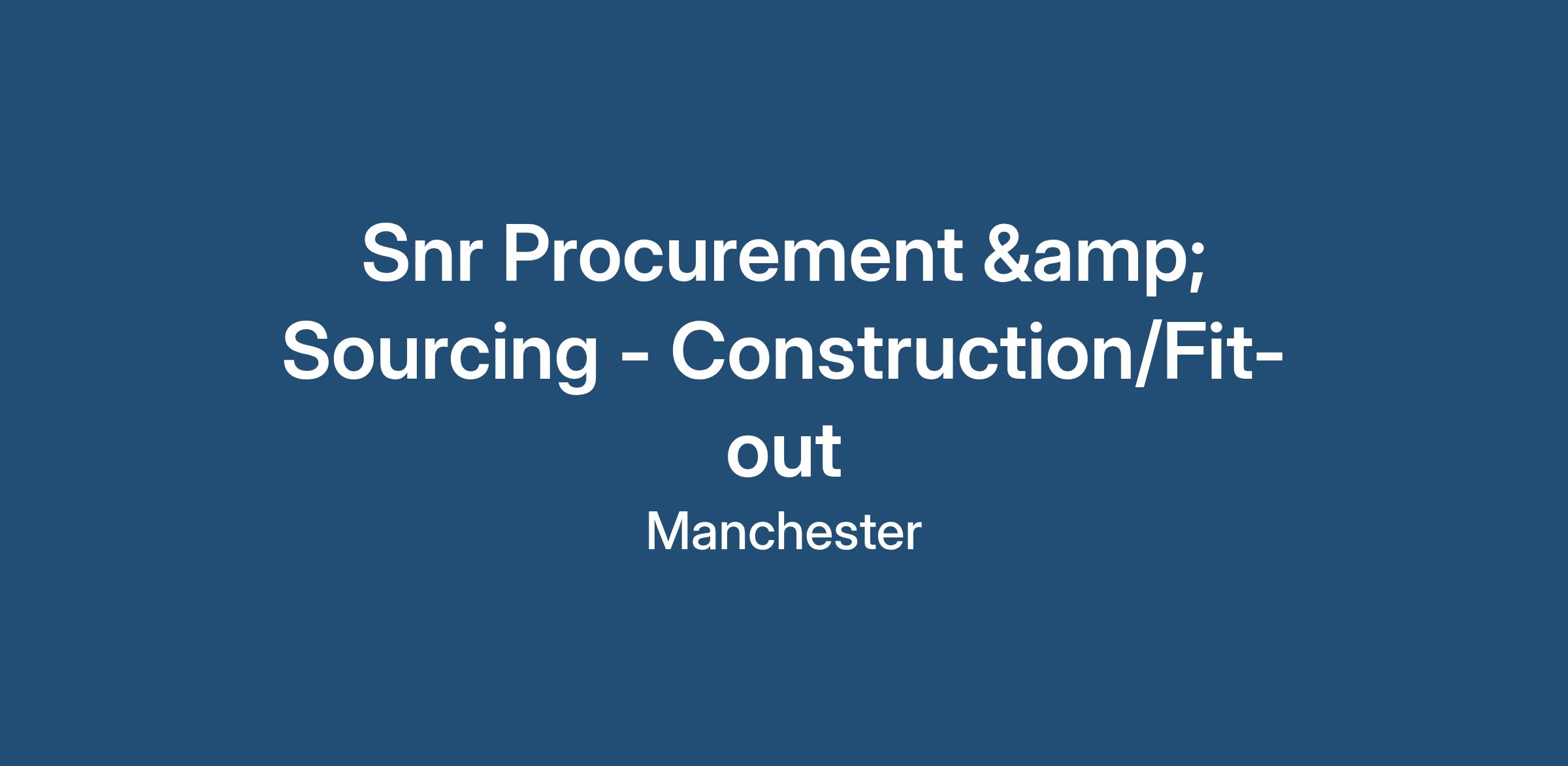 The Snr Sourcing Lead - Construction & Fitout role in Manchester/Leeds/London/Nottingham requires expertise across complex procurement and sourcing within indirects. Industry agnostic but a bias towards: retail, financial services. The successful candidate will lead sourcing strategies and deliver cost-effective solutions that align with organisational goals.