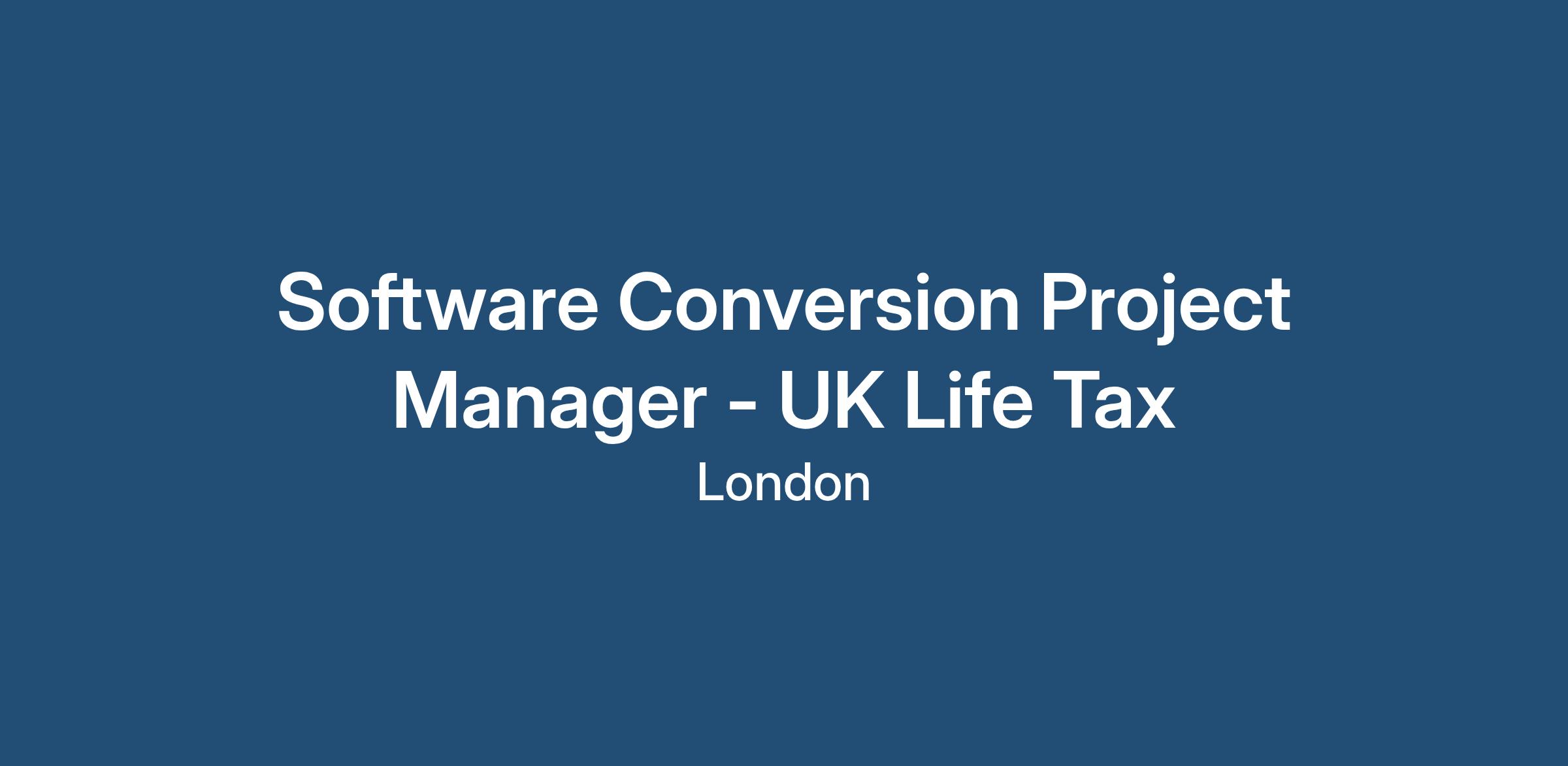 Software Conversion Project Manager - UK Life Tax