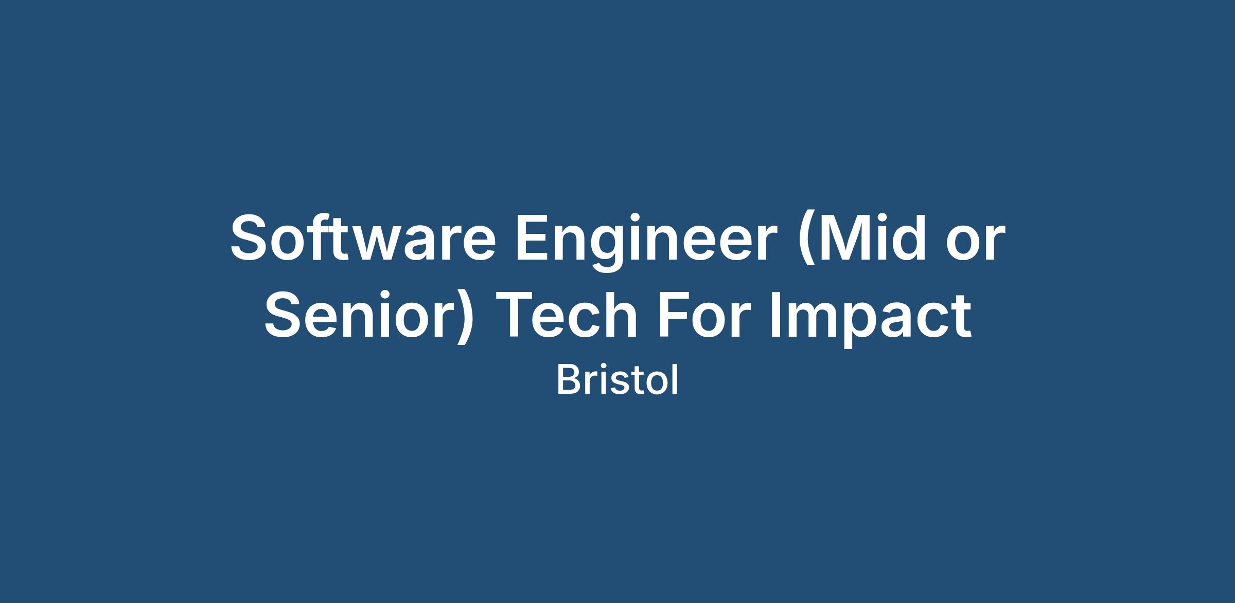 Software Engineer (Mid or Senior) Tech For Impact