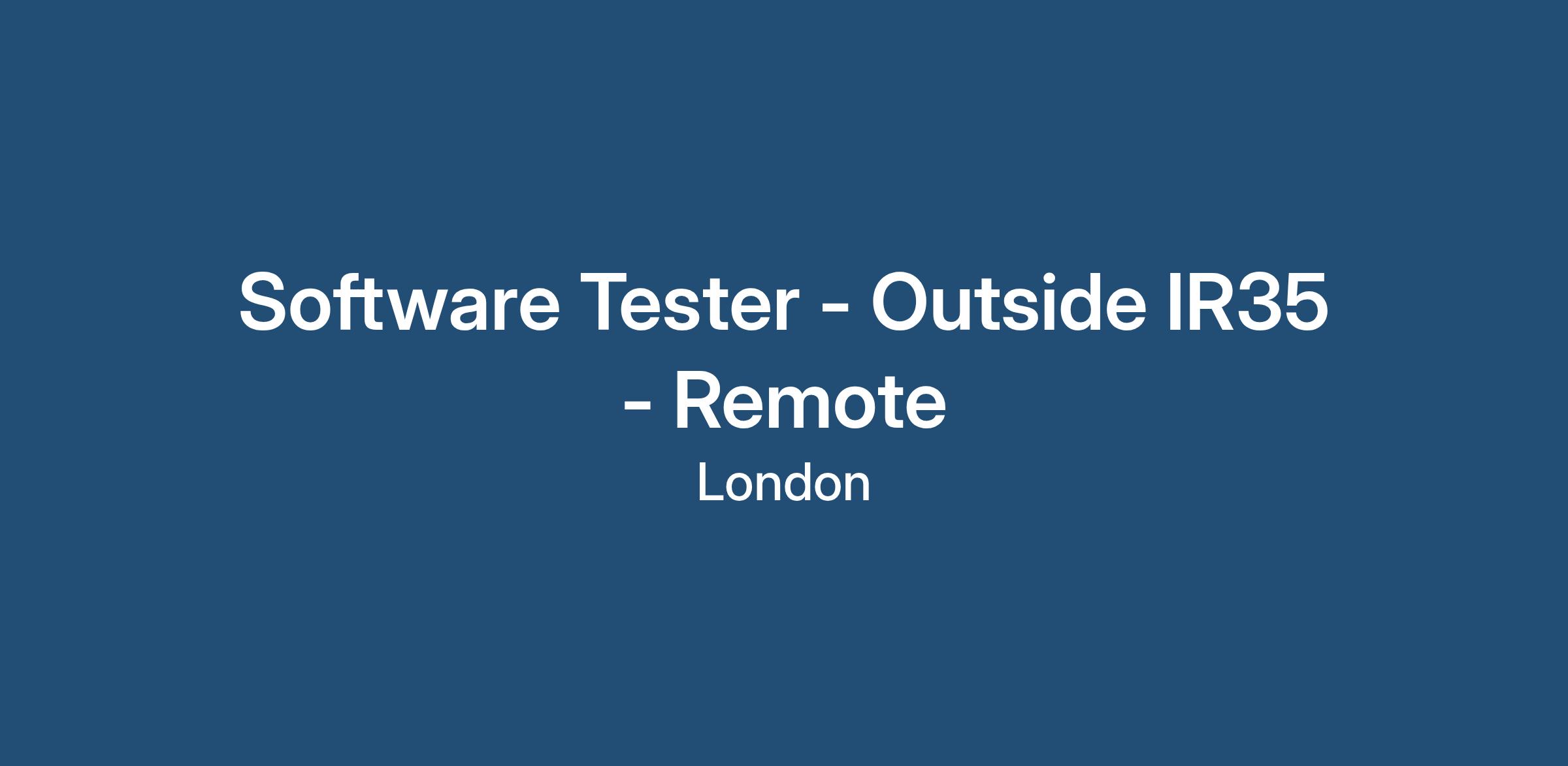 Software Tester - Outside IR35 - Remote