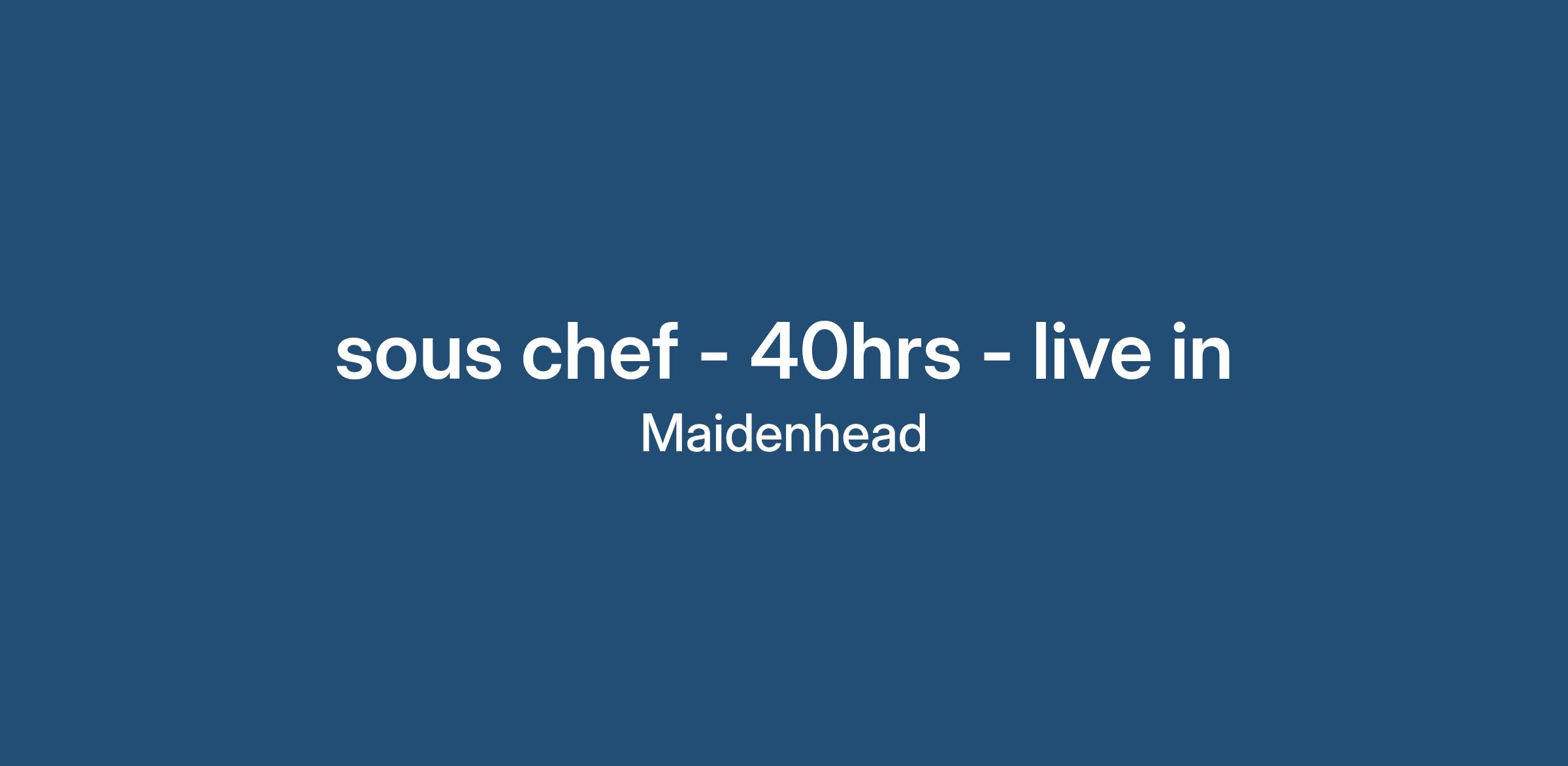 Sous chef required for an establishment in the Berkshire area, this is 40 hours a week, you get a good life balance in this kitchen. This is a sous chef role working under the Head chef and the senior sous chef. There is parking on site. This is fresh food, they have a restaurant and also some events.