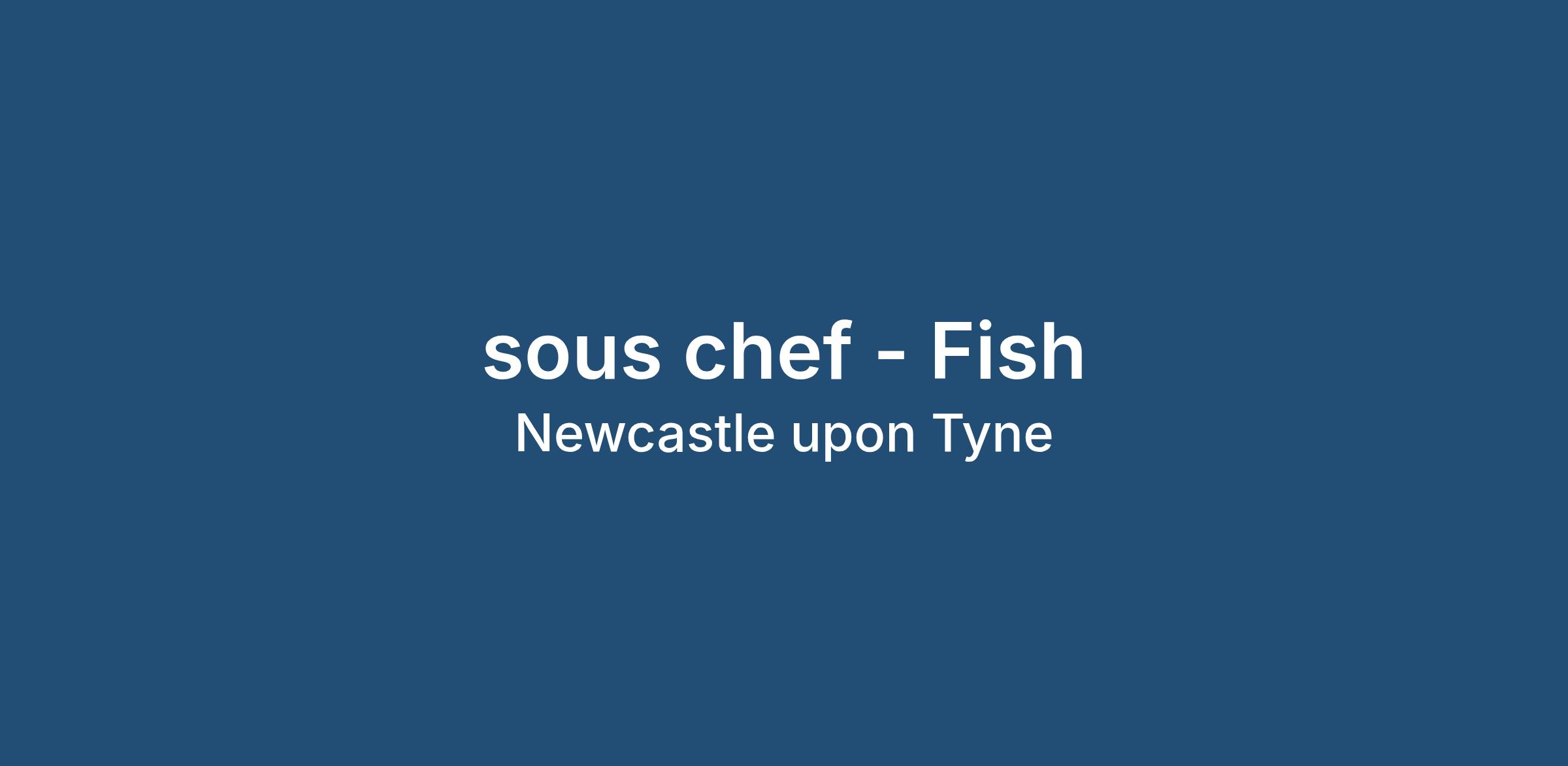Sous chef required for a FISH FOCUSED kitchen towards the coast in south shields. Are you passionate about fish and have good presentation skills. This kitchen gets daily fish land in the kitchen, the sous chef and head chef will create fish specials each day. They are looking for a chef with passion for fish and passion to be creative and bring new ideas. If you are all about fish, with a great knowledge of different types of fish - this is the role for you. You will get lots of important on the menu and they want the sous chef to bring ideas and fish knowledge.