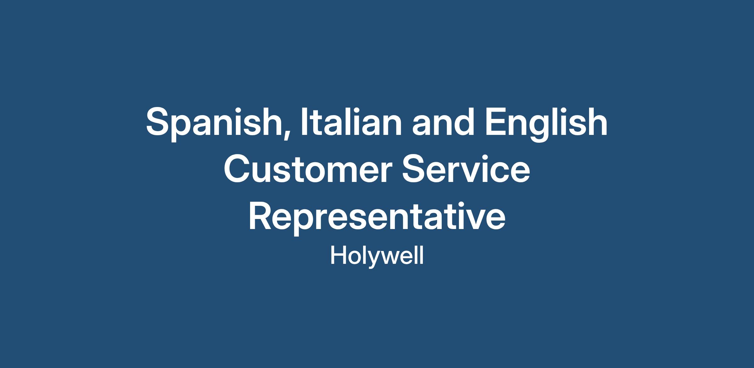 The ideal candidate will be confident with fluency in Spanish, Italian and English and will possess outstanding communication skills, as you will be communicating with various clients and departments within the company. This is an amazing opportunity for a professional individual to be part of a well-known organisation, where you will have the chance to progress within the company.