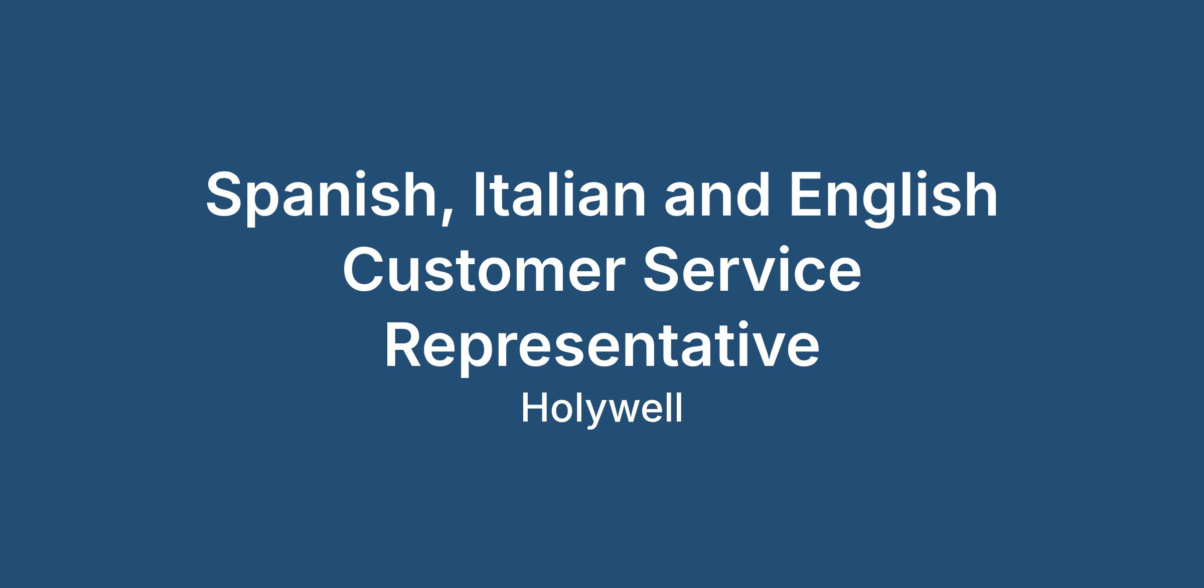 The ideal candidate will be confident with fluency in Spanish, Italian and English and will possess outstanding communication skills, as you will be communicating with various clients and departments within the company. This is an amazing opportunity for a professional individual to be part of a well-known organisation, where you will have the chance to progress within the company.