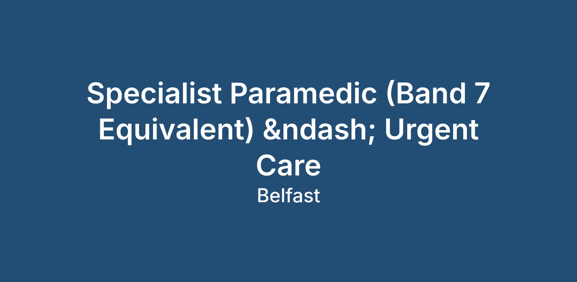 We are recruiting experienced Specialist Paramedics to support a well-established urgent care service across multiple sites in Northern Ireland.