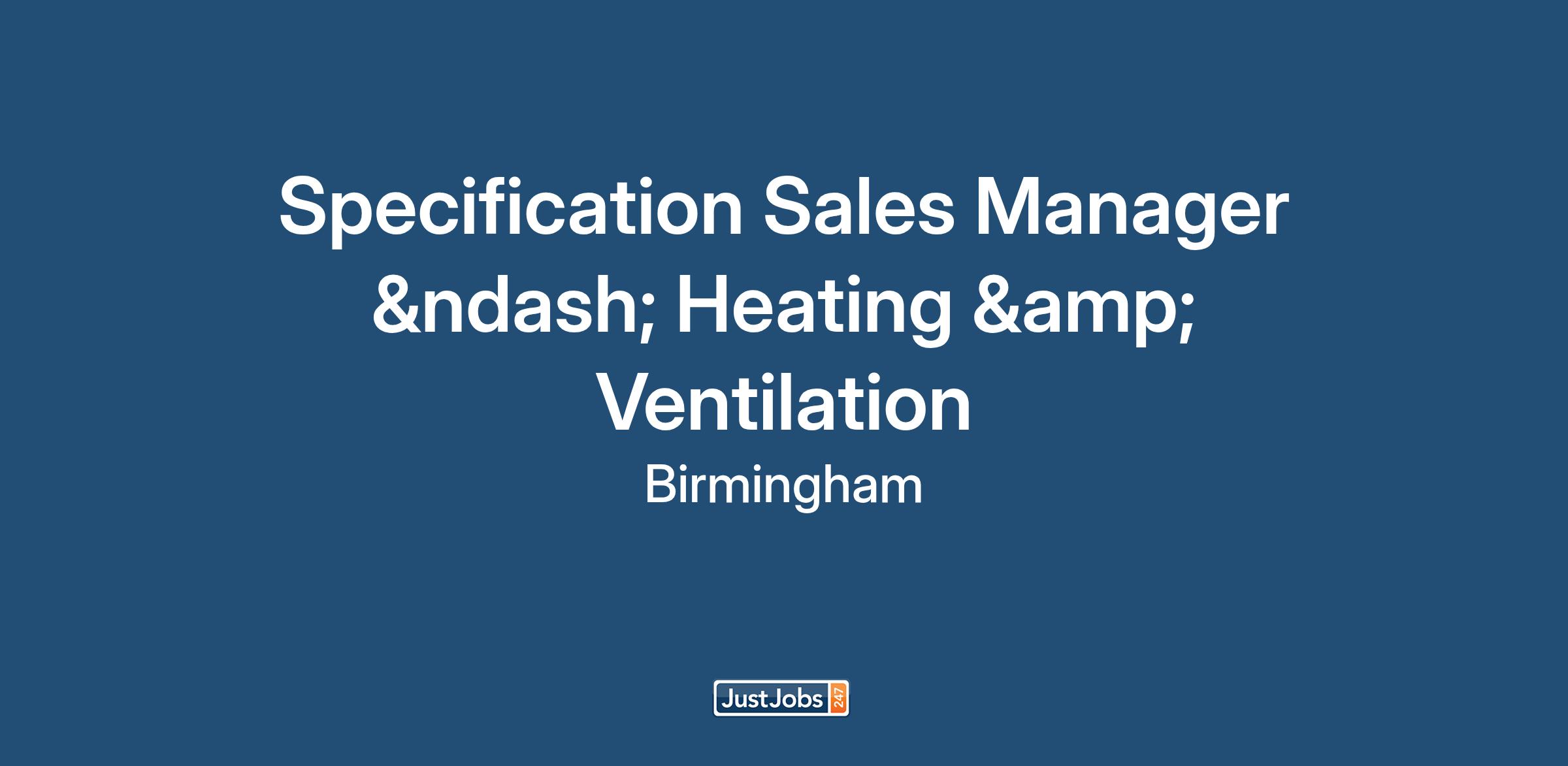 Specification Sales Manager – Heating & Ventilation