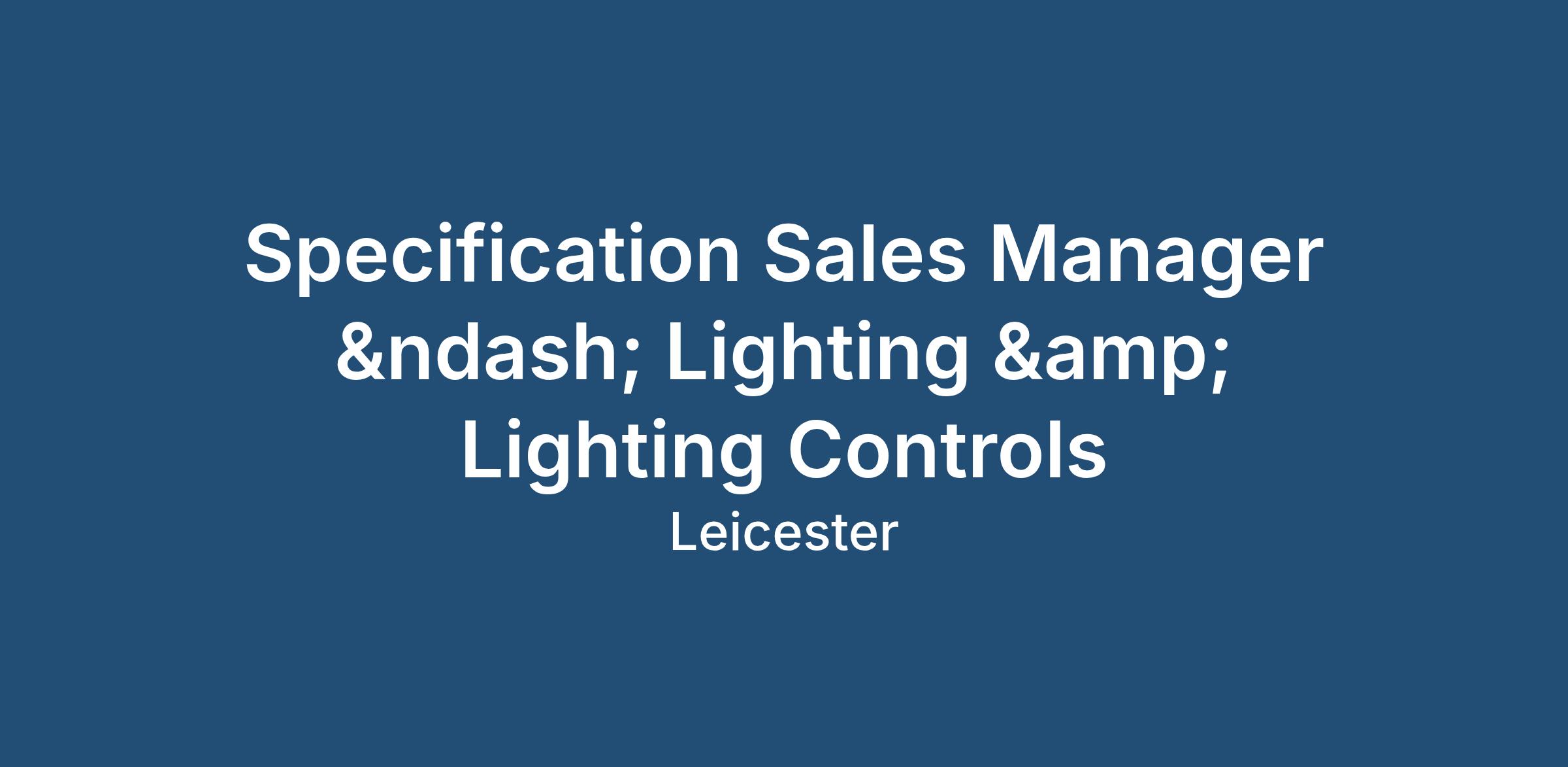 The role of the Specification Sales Manager – Lighting & Lighting Controls will involve: