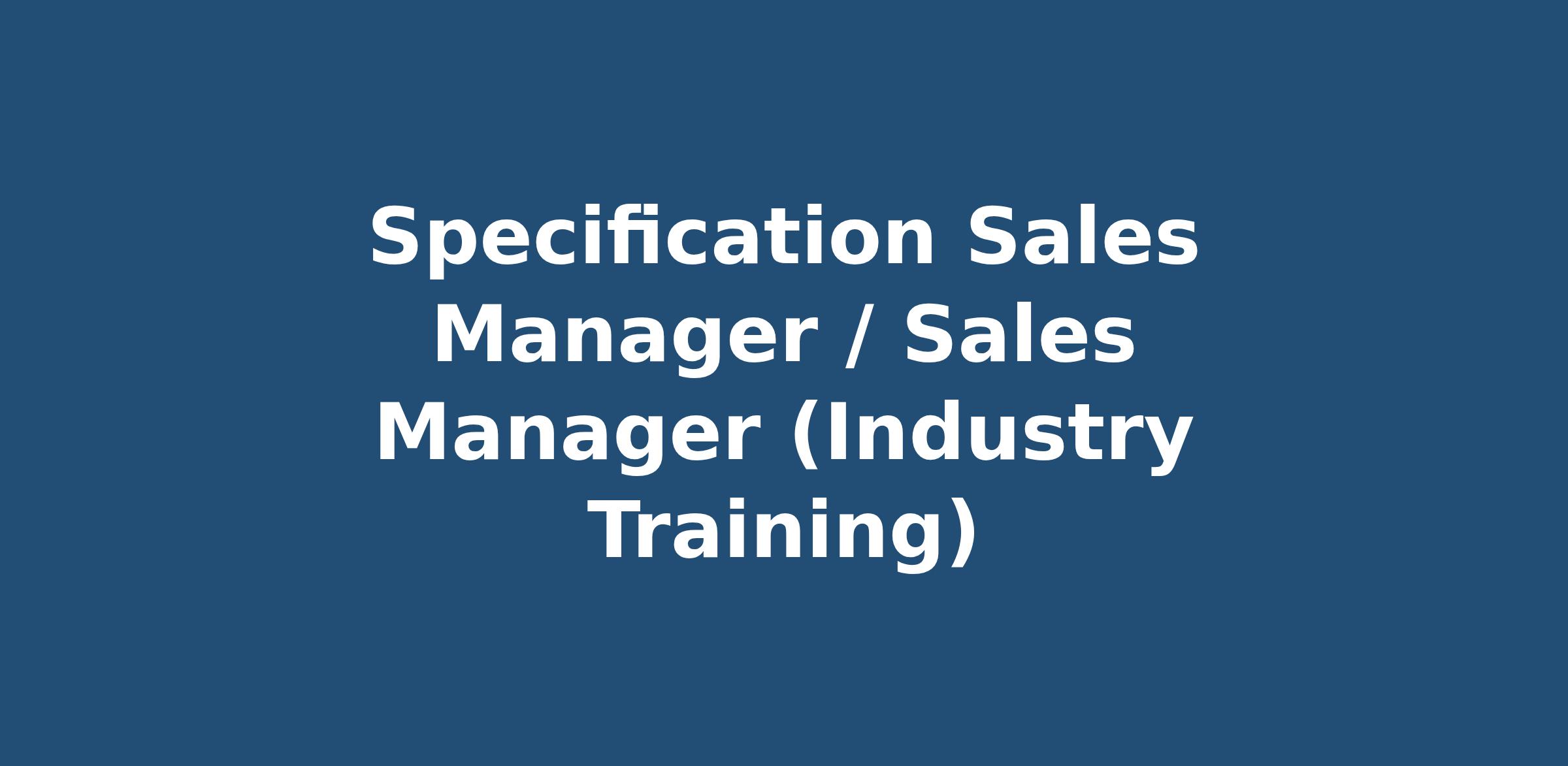 Specification Sales Manager / Sales Manager (Full Industry Training)