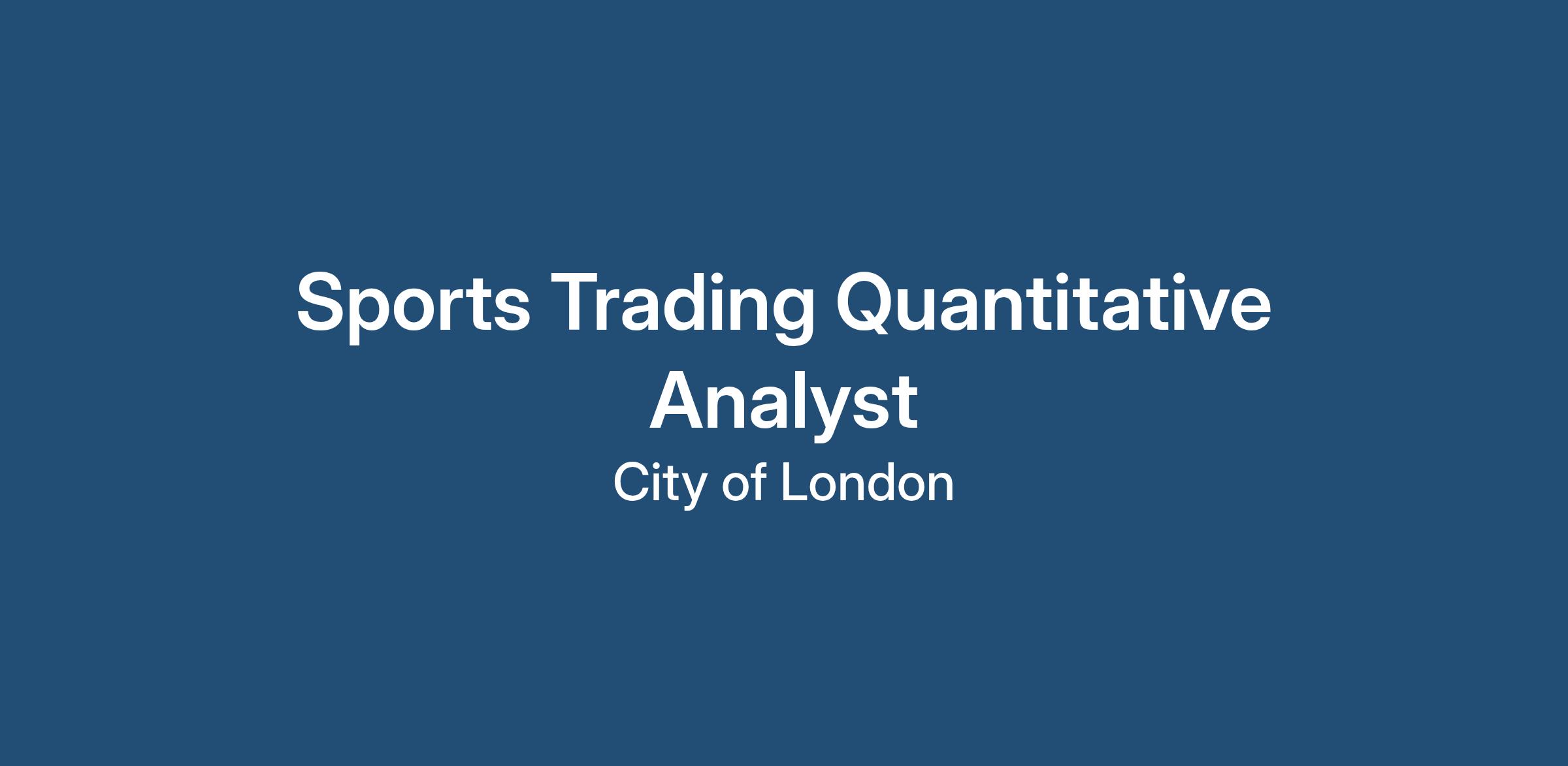 The successful Quantitative Analyst will be a forward-thinking individual who is more than comfortable working to both their own initiative and as a team. You will ideally be educated to at least MSc in a quantitative subject such as Mathematics, Statistics, Computer Science or Physics and any knowledge with sports betting/trading would be beneficial.