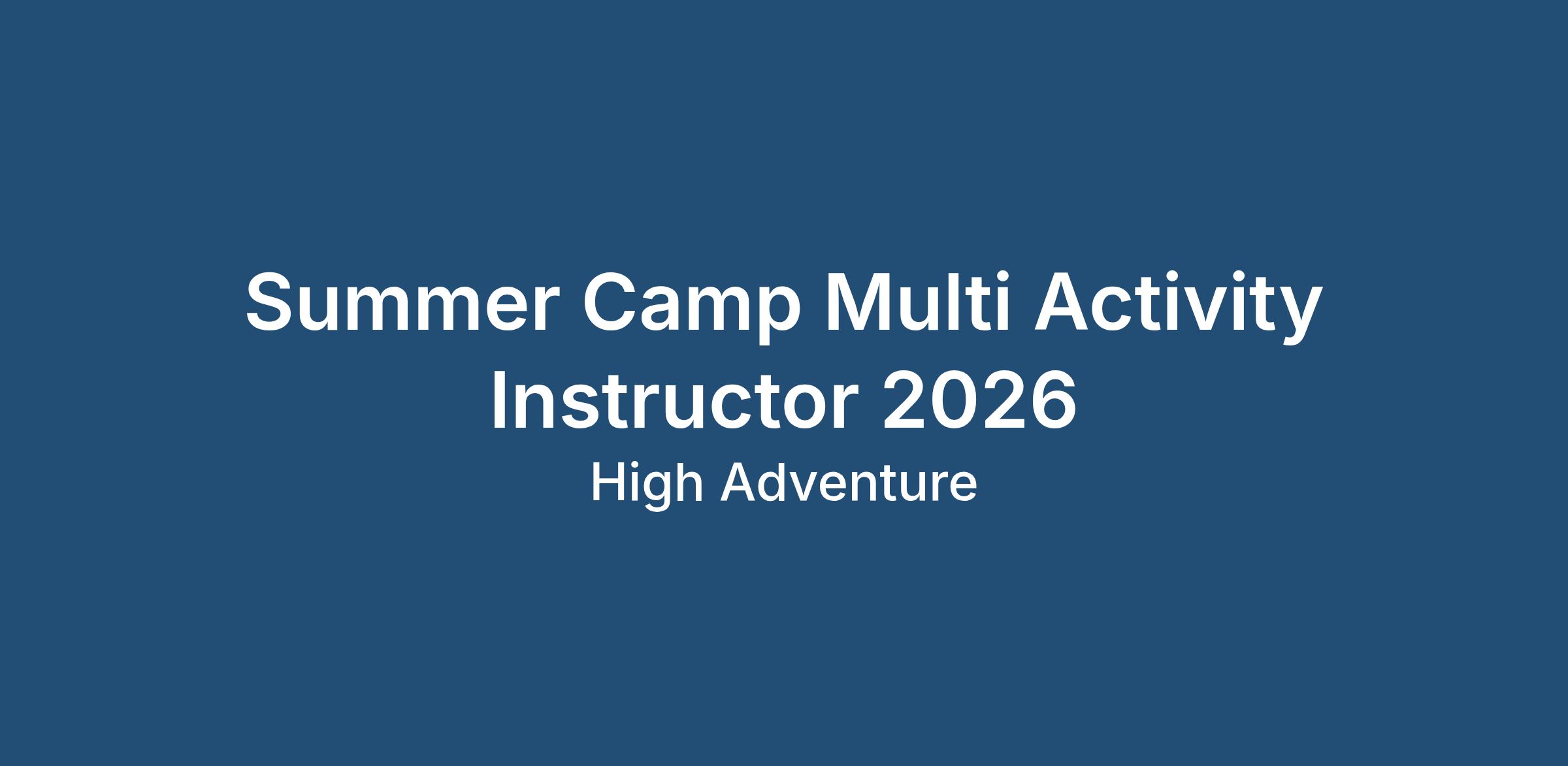 High Adventure Multi Activity Instructors Summer Camp 2026
