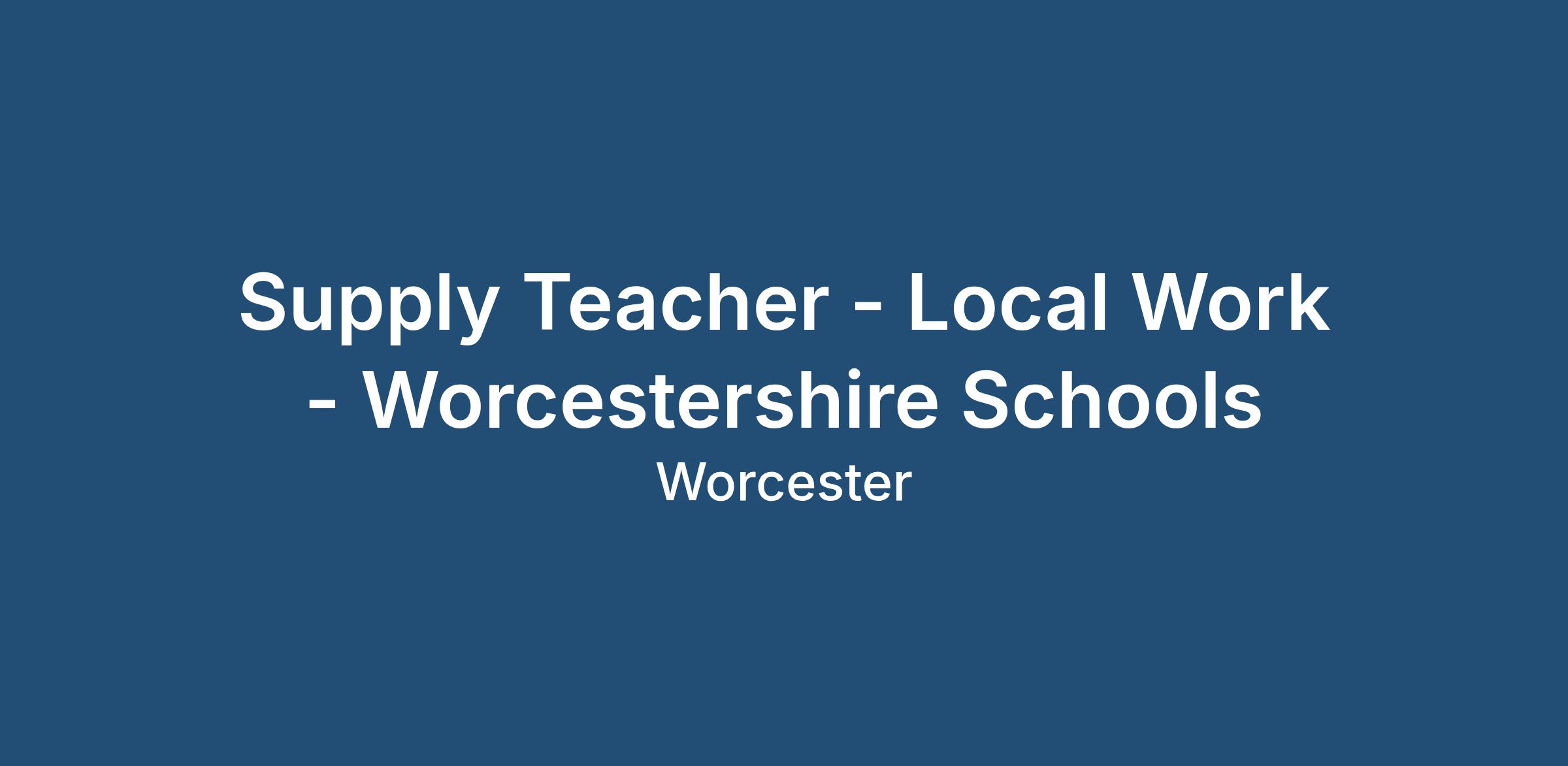 Supply Teacher - Local Work - Worcestershire Schools