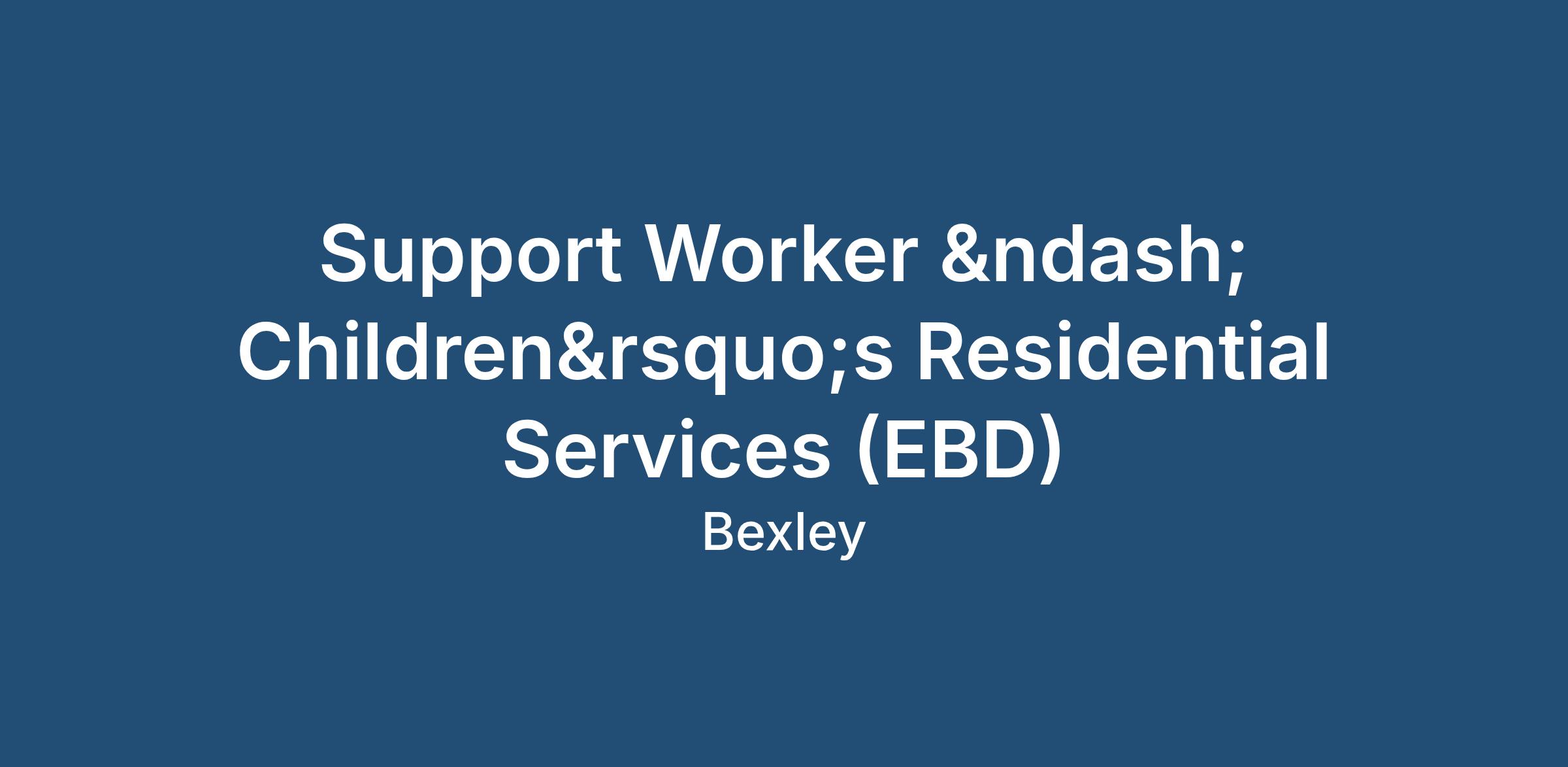 Job Title: Support Worker – Children’s Residential Services (EBD)