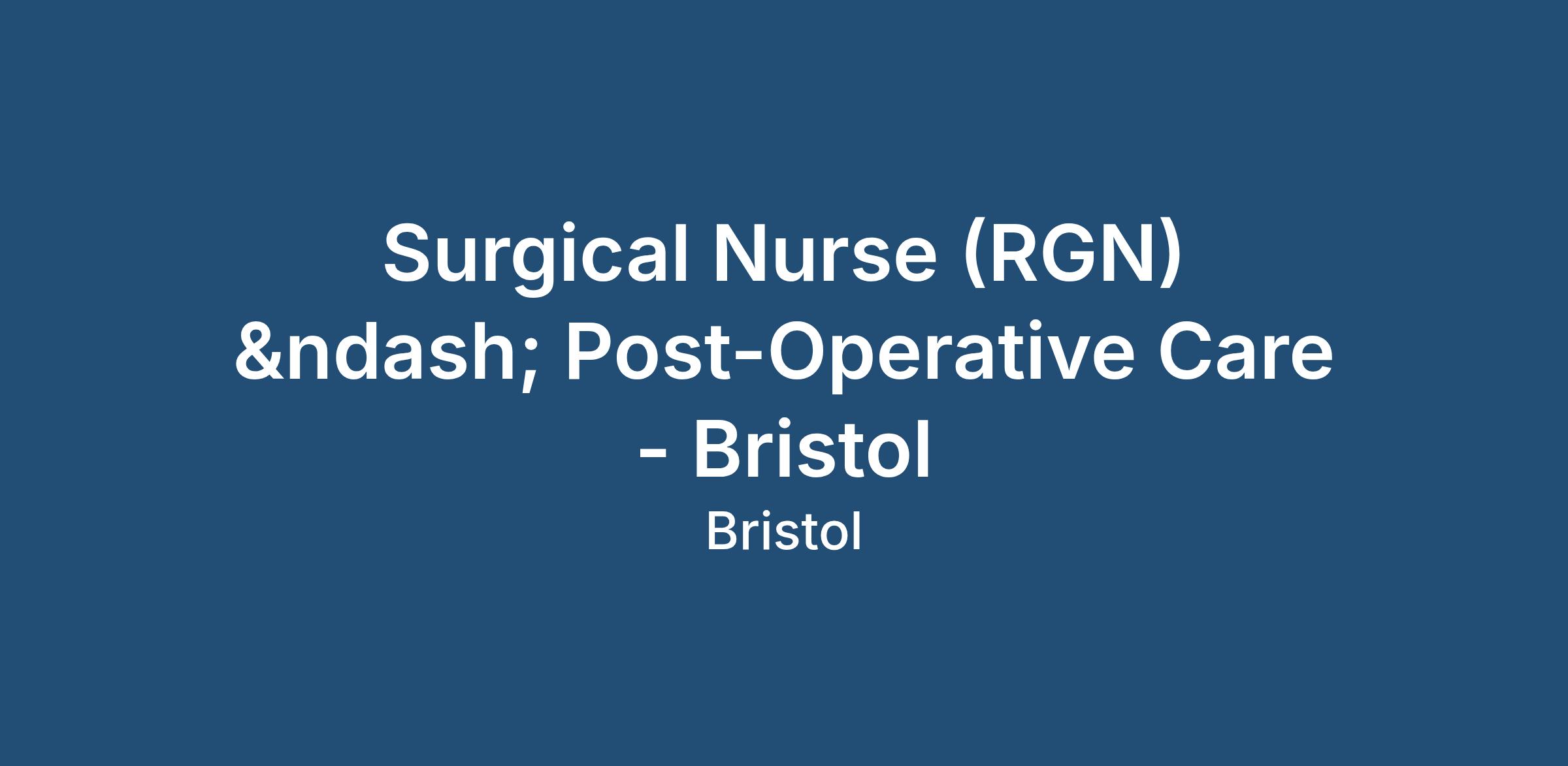 Daytime Healthcare Agency are seeking a dedicated and compassionate Registered General Nurse (RGN), specialising in post-operative care for agency care requirements in Bristol. You will play a vital role in supporting patients through their recovery following planned surgical procedures, ensuring high standards of clinical care and patient safety.
