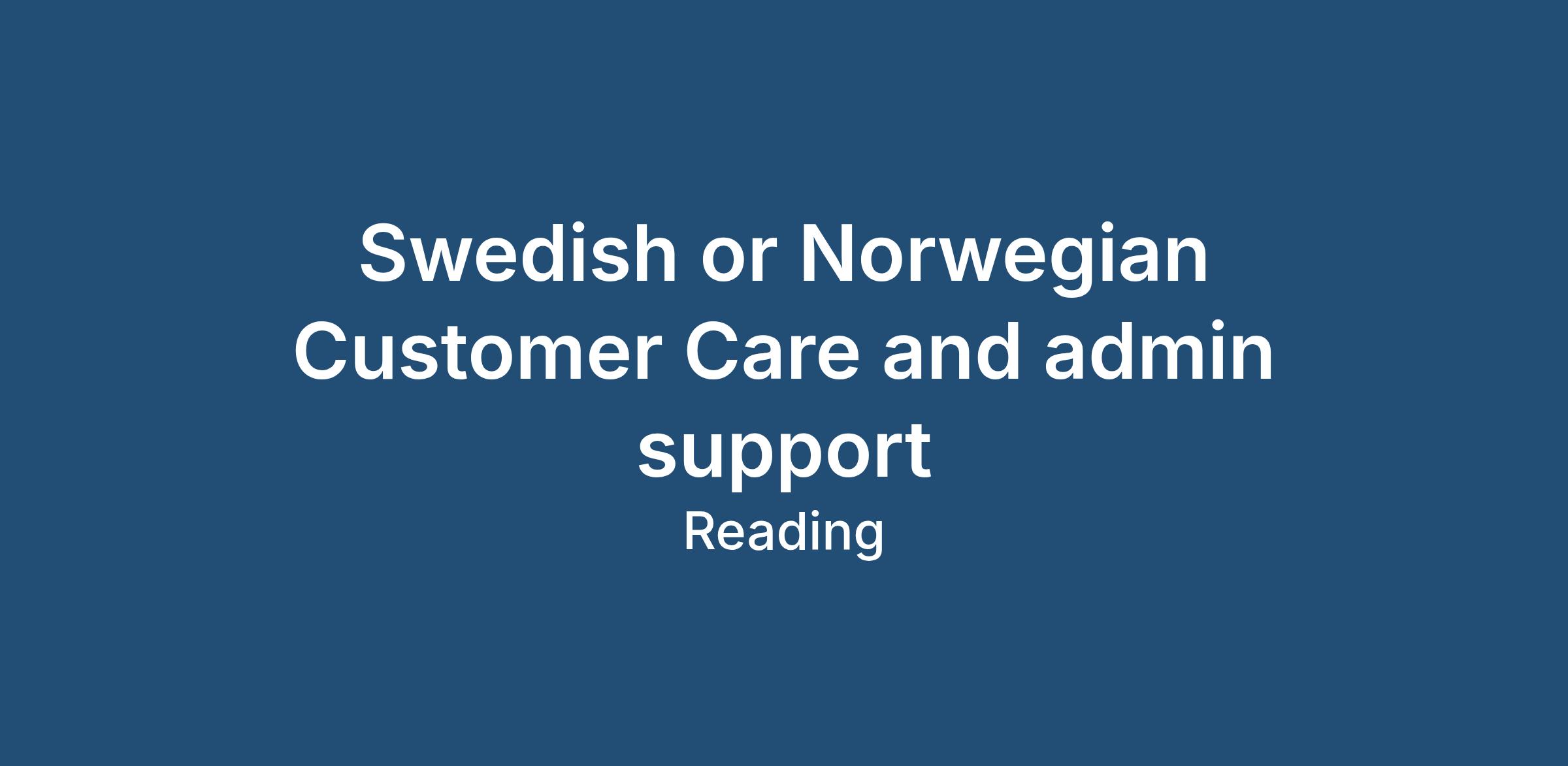 This is a lovely role for a SWEDISH OR Norwegian speaker who likes customer care (basically it's sales admin support) and is located around the READING area. There will be full training provided in this position and plenty of opportunity to grow your responsibilities and move up in the organisation if you have a talent for looking after customers. The company is within the automotive sector and you will deal with plenty of classic inbound calls but is also a lot more varied, as you will be organising deliveries and liaising with a warehouse . The team you will be joining is award-winning and really cares about its customers and you will be expected to take your time with each call, listen to the caller and make helpful suggestions about products and generally be very supportive. There is a high admin content in this role which makes it much more interesting that a straight forward customer care role, and the team is friendly and warm.