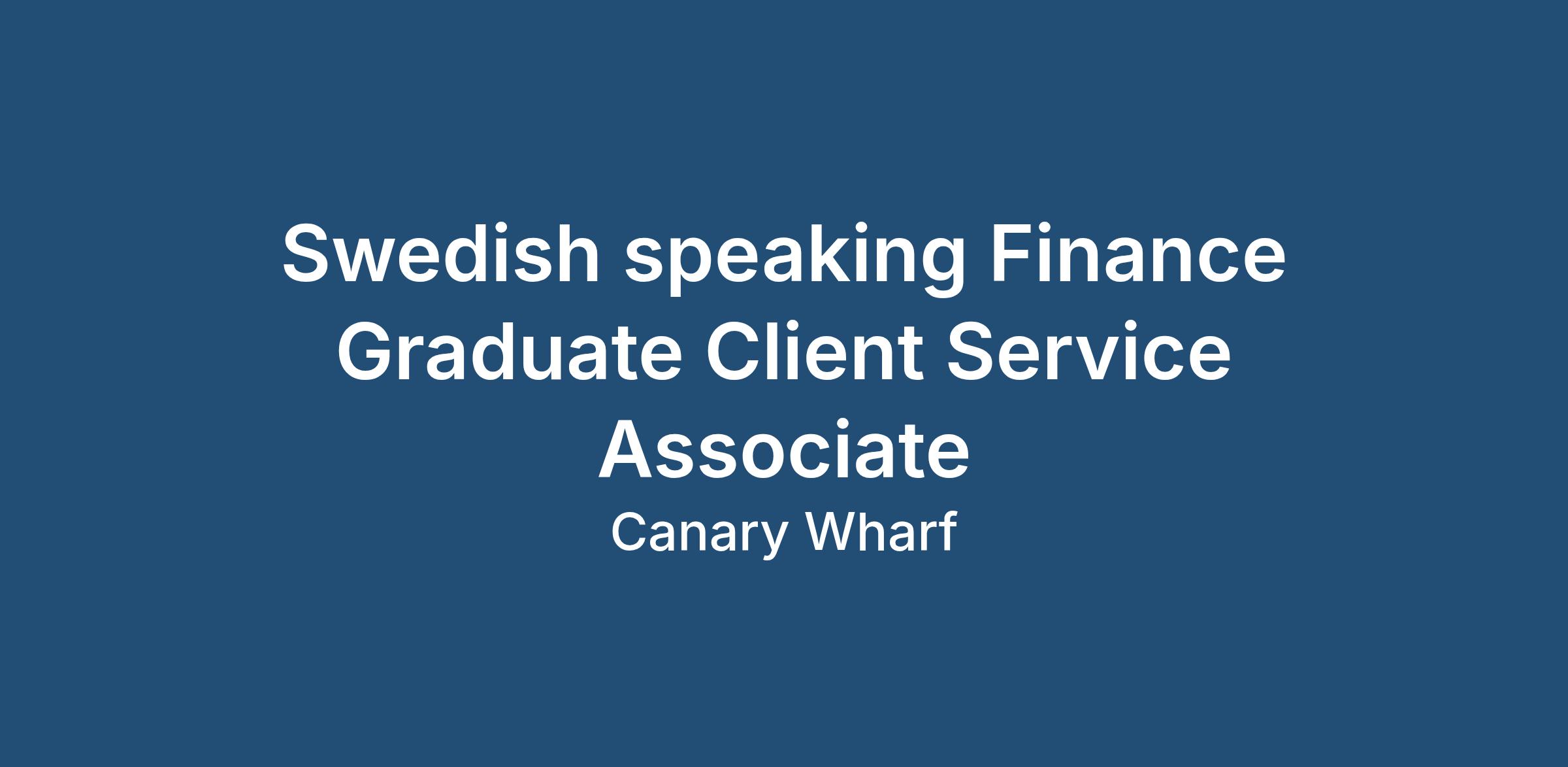Swedish speaking Finance Graduate Client Service Associate