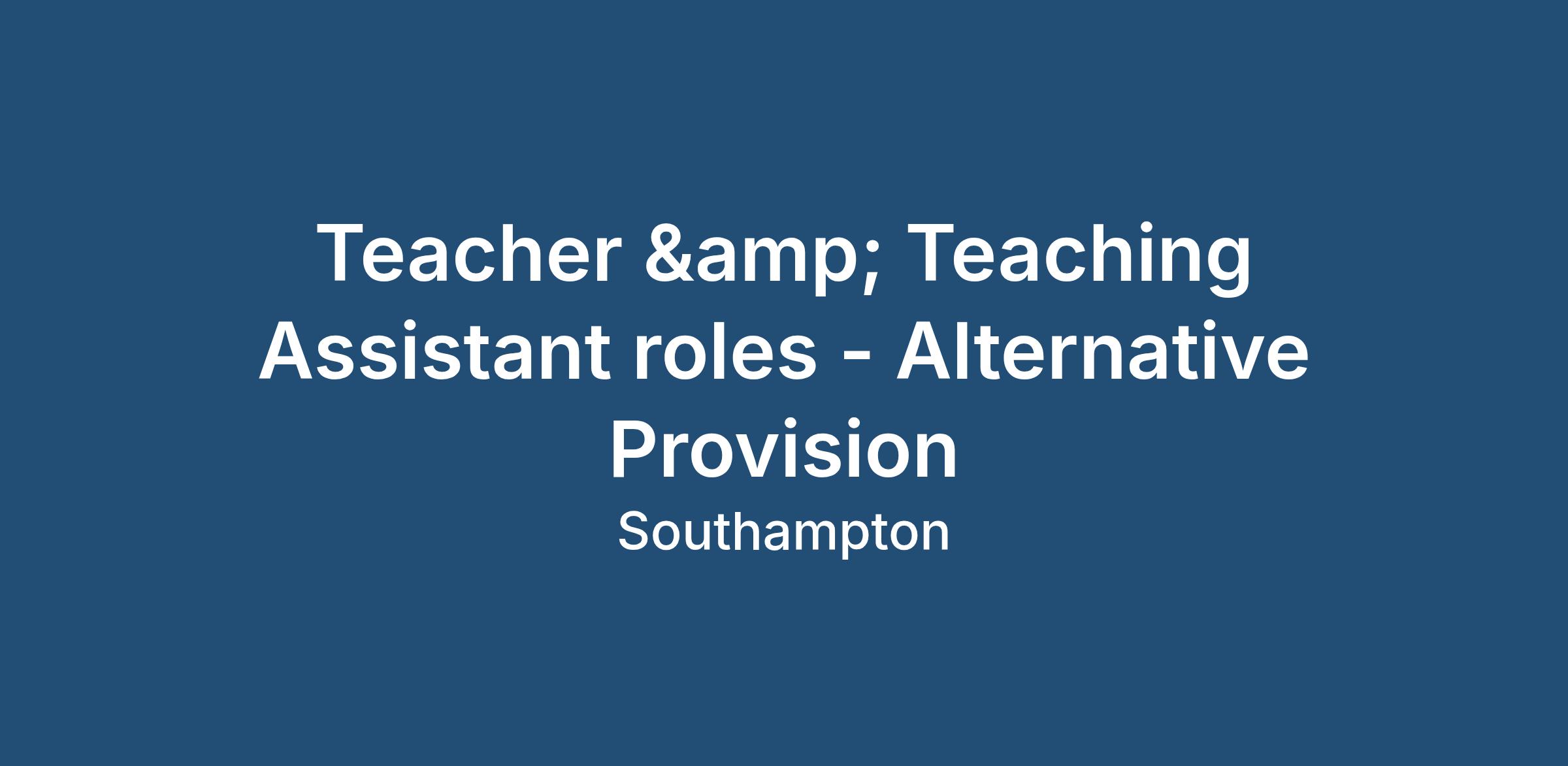 Teacher & Teaching Assistant roles - Alternative Provision