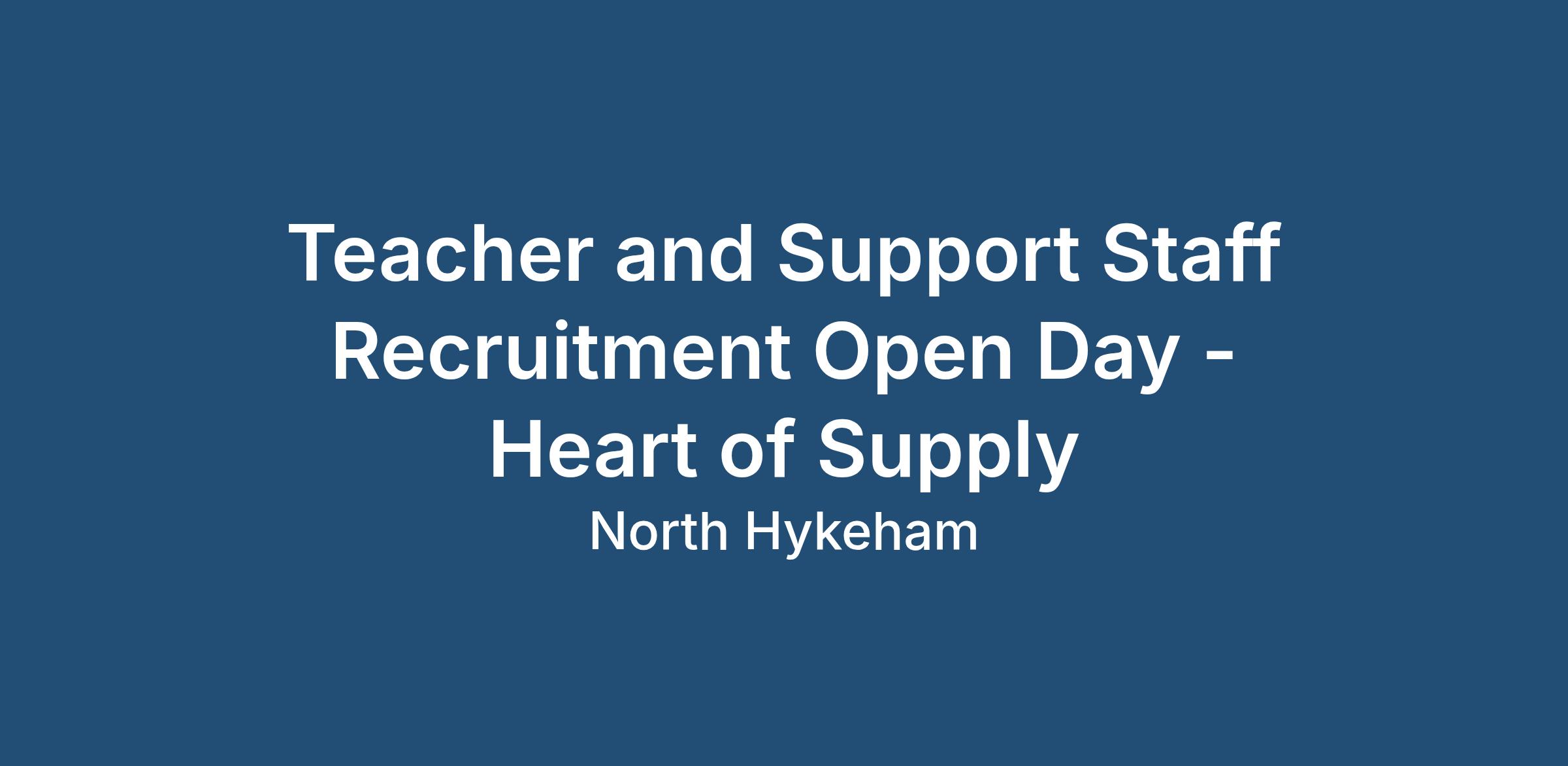 Heart of Supply Recruitment Open DayTeaching & Support Staff | Half-Term