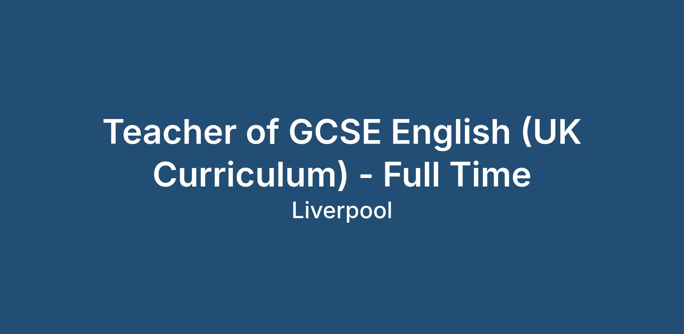 Teacher of GCSE English (UK Curriculum) - Full Time