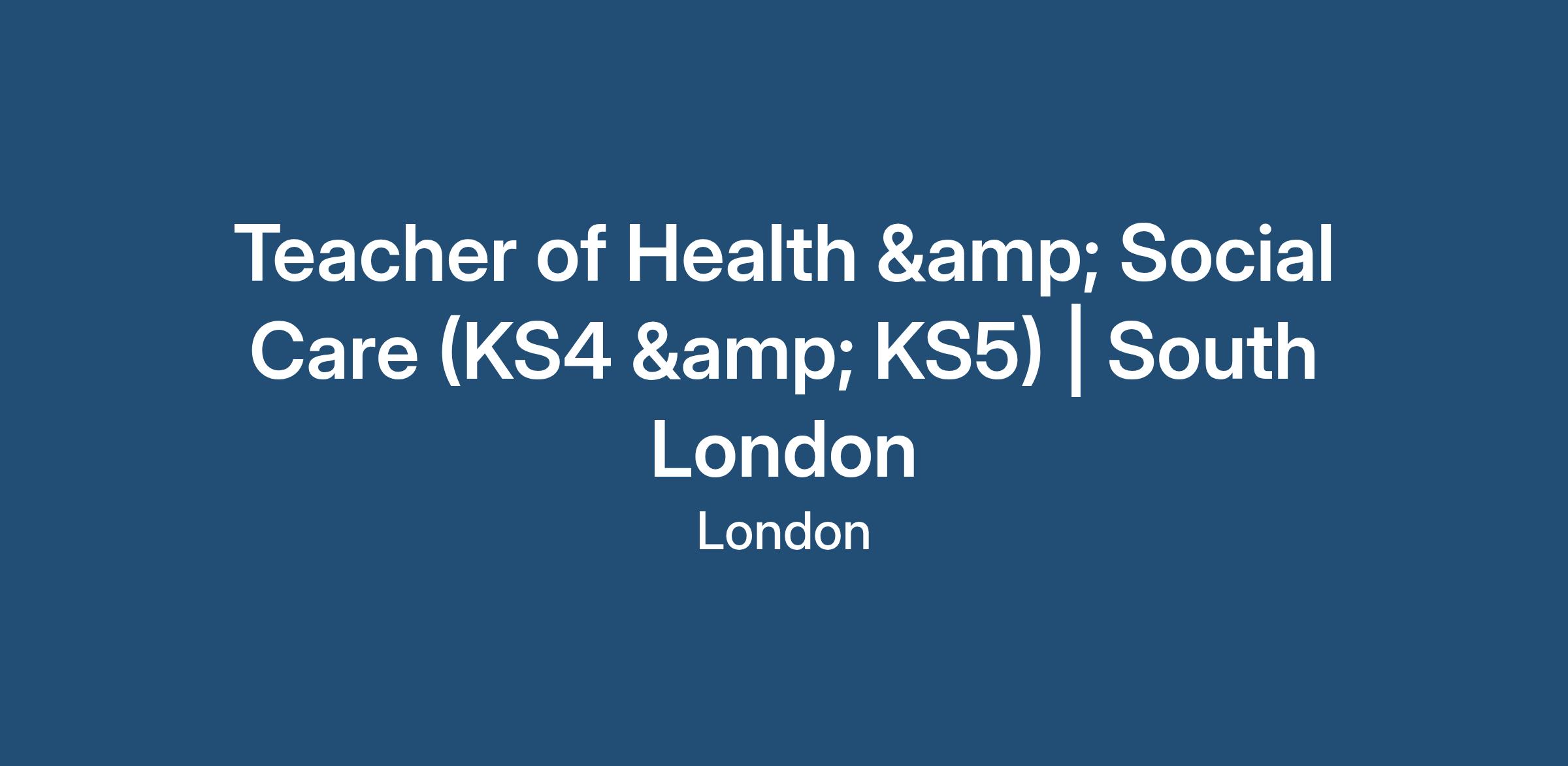 Teacher of Health & Social Care (KS4 & KS5) | South London