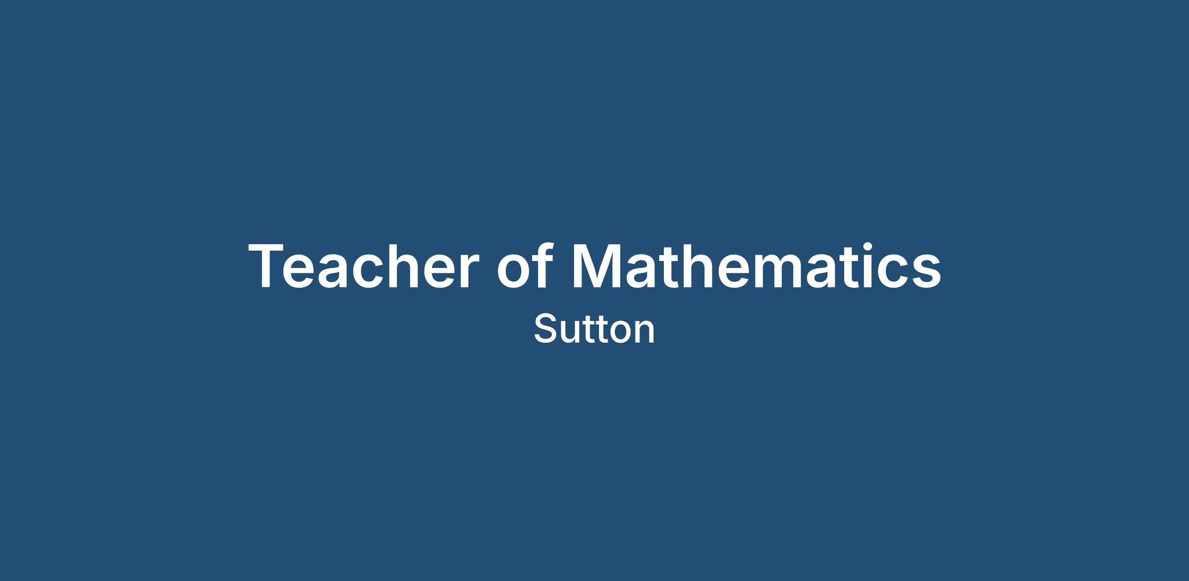 Teacher of Mathematics | Sutton School | September 2026