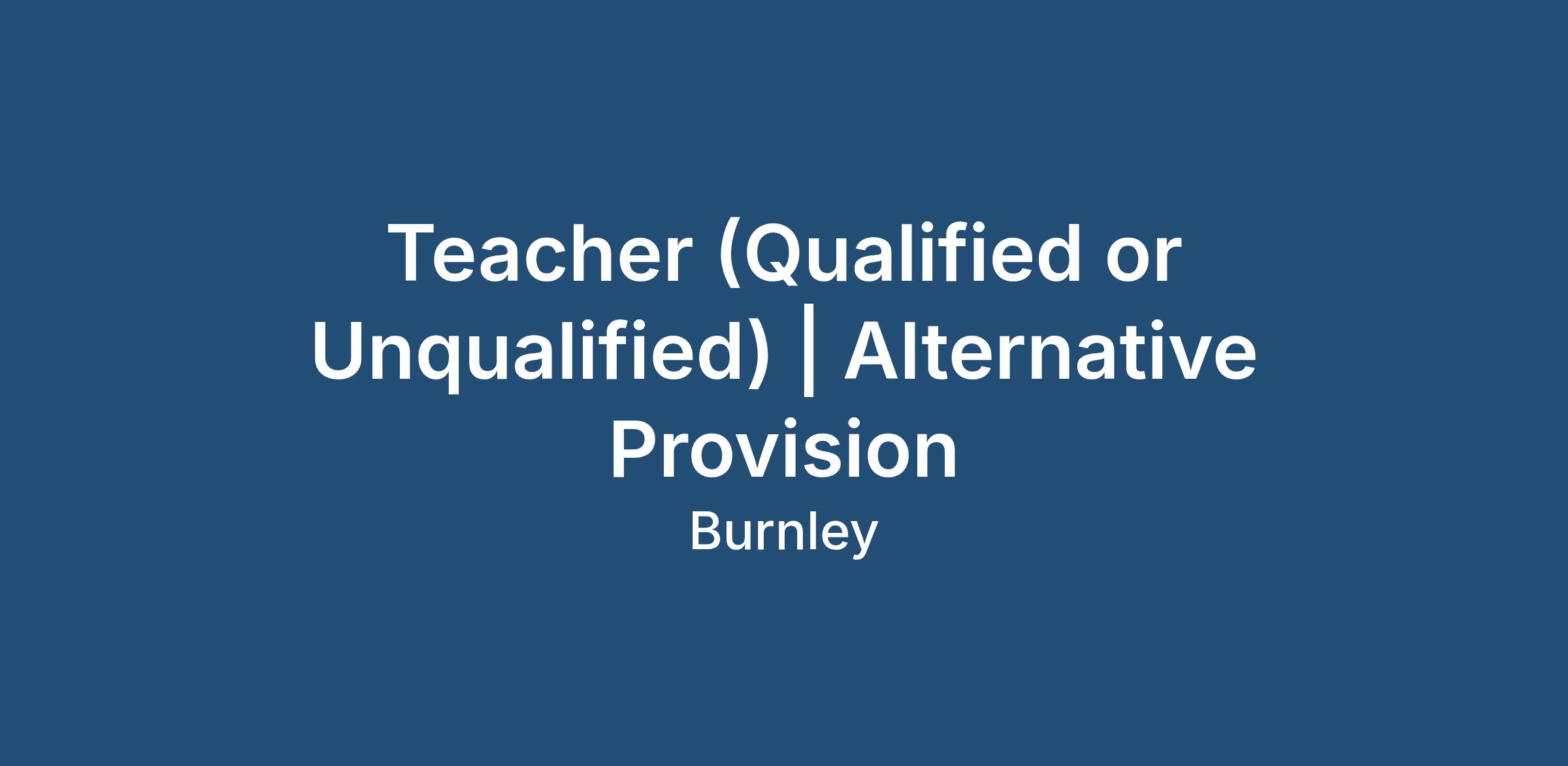 Teacher (Qualified or Unqualified) | Alternative Provision | Burnley