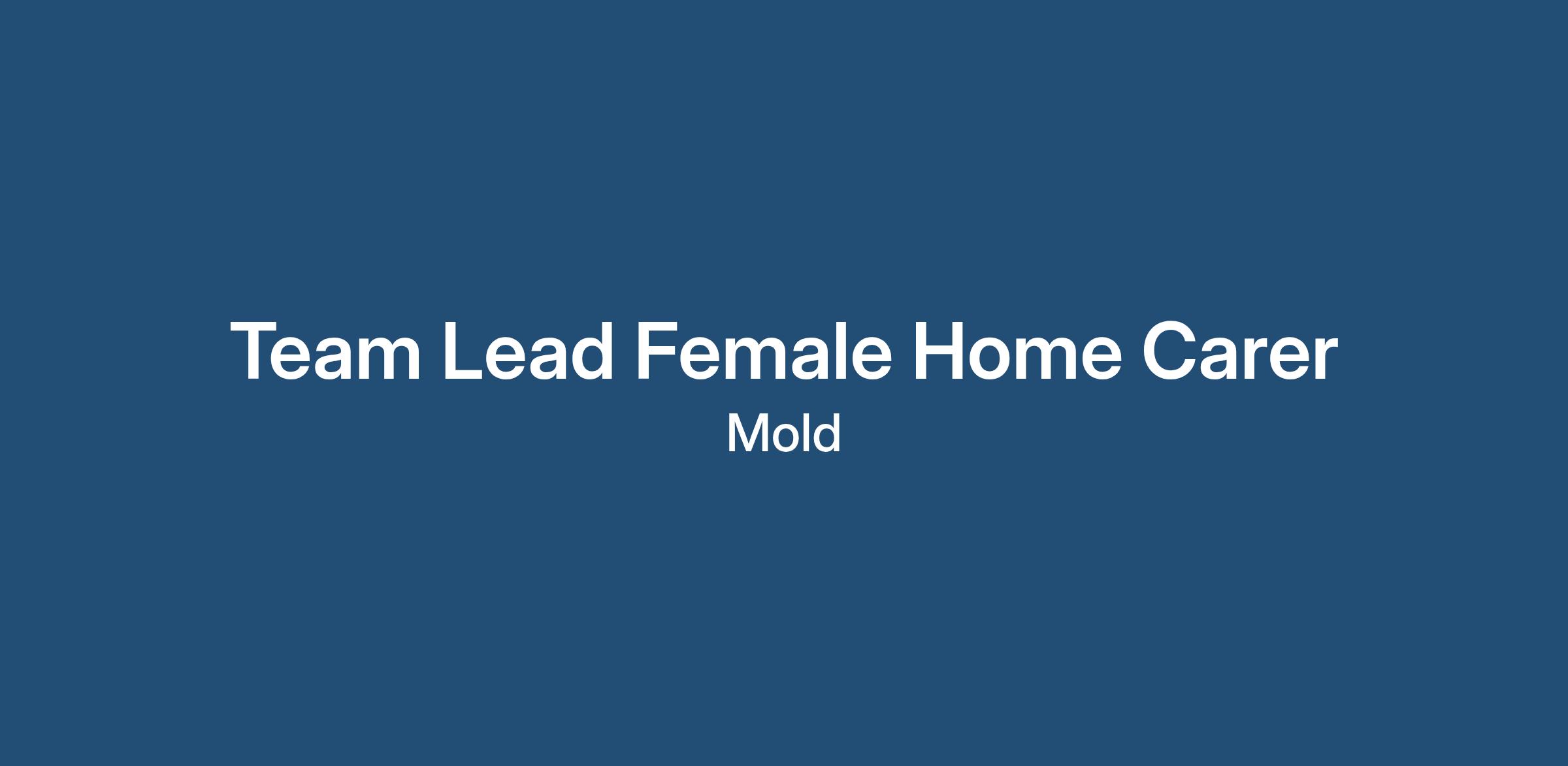 TEAM LEADER FEMALE HOME CARER – WREXHAM /MOLD/ FLINTSHIRE/