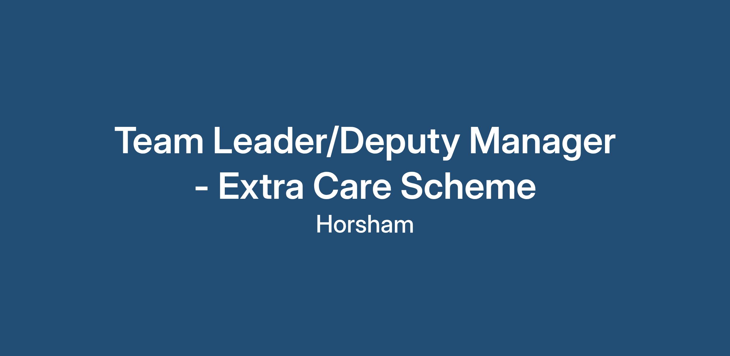 A leading care provider who specialise in Domiciliary Care and Extra Care are looking for a Team Leader/Deputy Manager to join their team in Horsham.