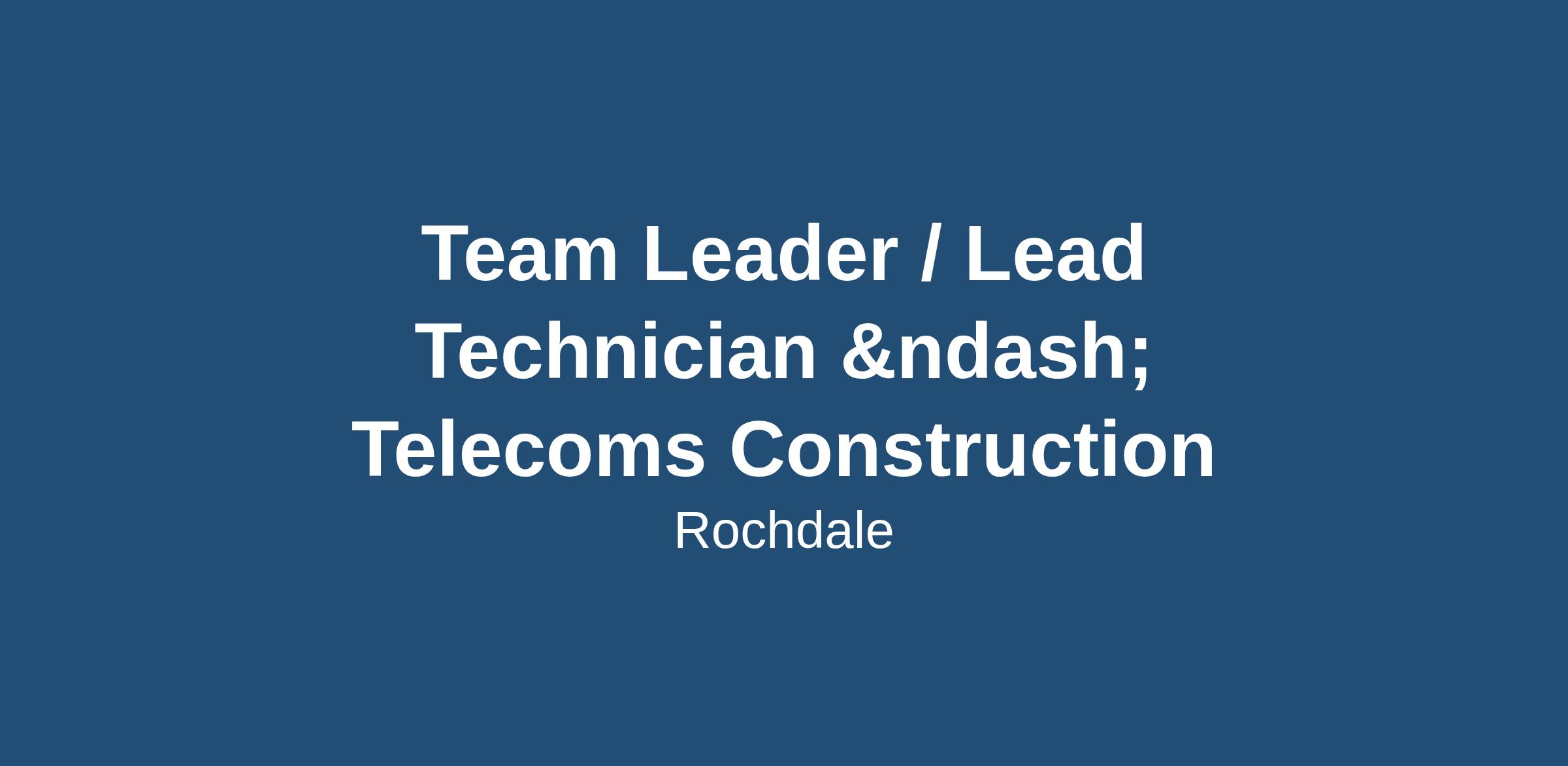 Team Leader / Lead Technician – Telecoms Construction