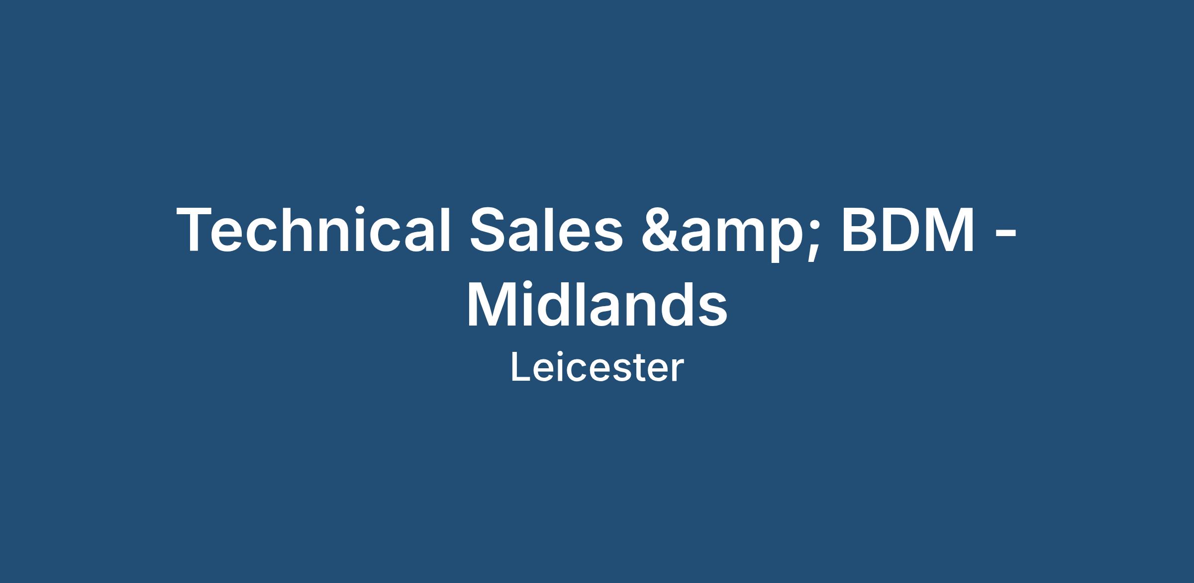 Technical Sales & Business Development Manager - Midlands