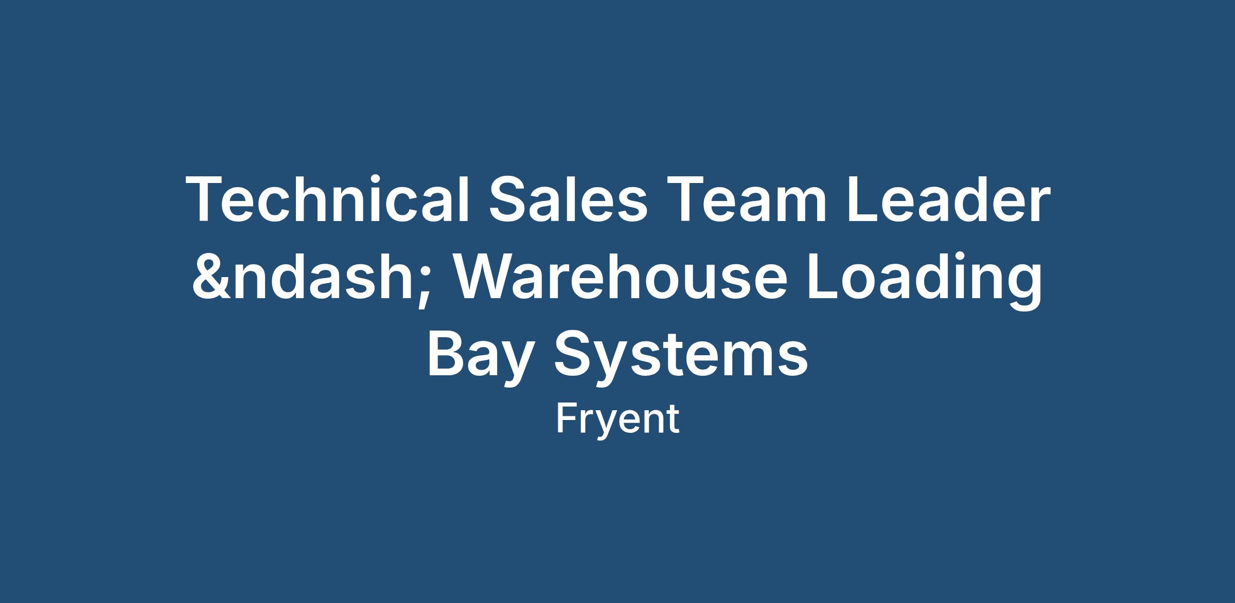 Job Title: Technical Sales Team Leader – Warehouse Loading Bay Systems