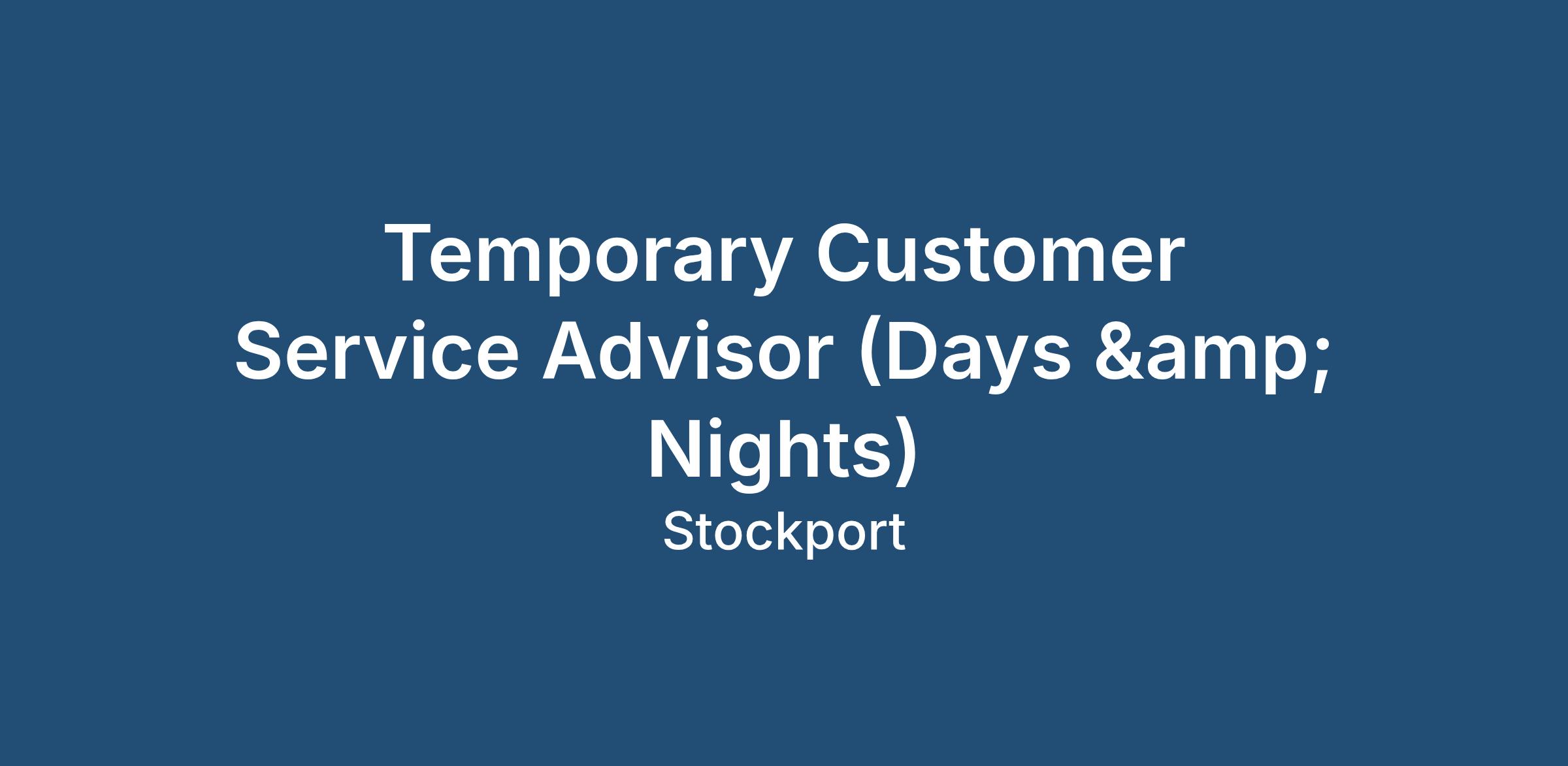 As a Temporary Customer Service Advisor (Days & Nights) you will: