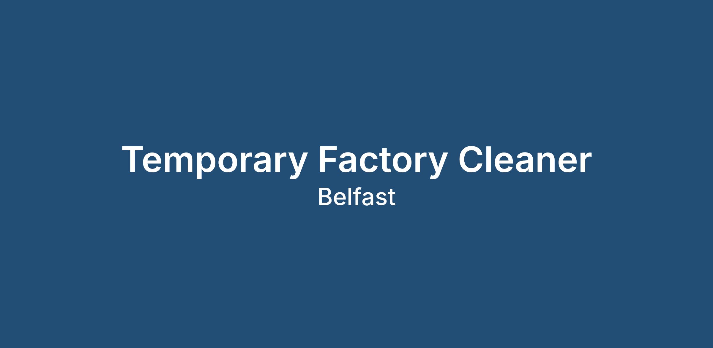 We are seeking a reliable Temporary Cleaner to carry out housekeeping and cleaning duties within an industrial factory environment.