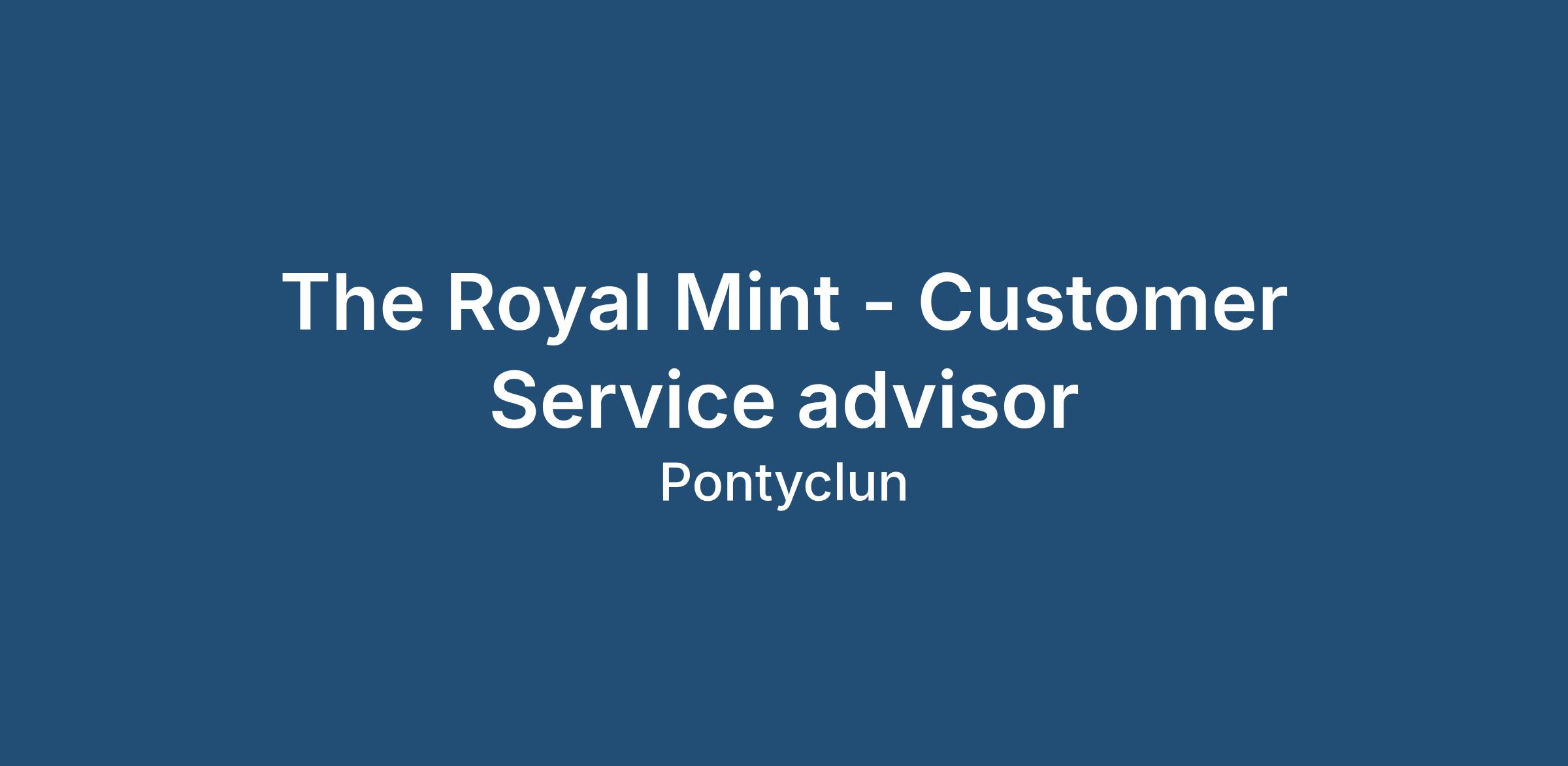 We are looking for someone like you to join our team as a Customer Service Advisor for The Royal Mint based in Llantrisant, CF72 8YT.