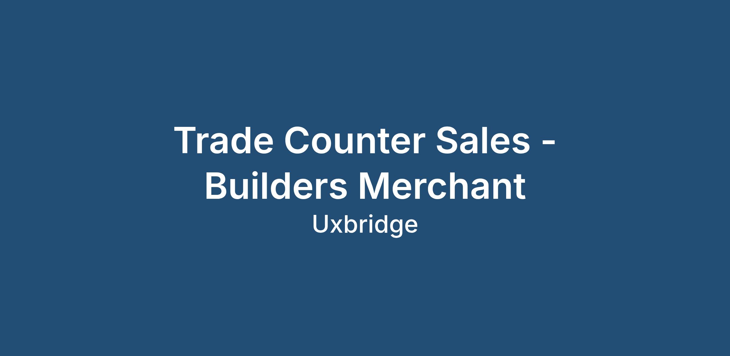 Interaction Recruitment are recruiting for an experienced Trade Counter Sales candidate from a builders merchant background to join their busy client in Uxbridge on a full-time permanent basis. This role is working Monday to Friday 07:00 to 16:30 and Saturday 07:00 to 10:30.