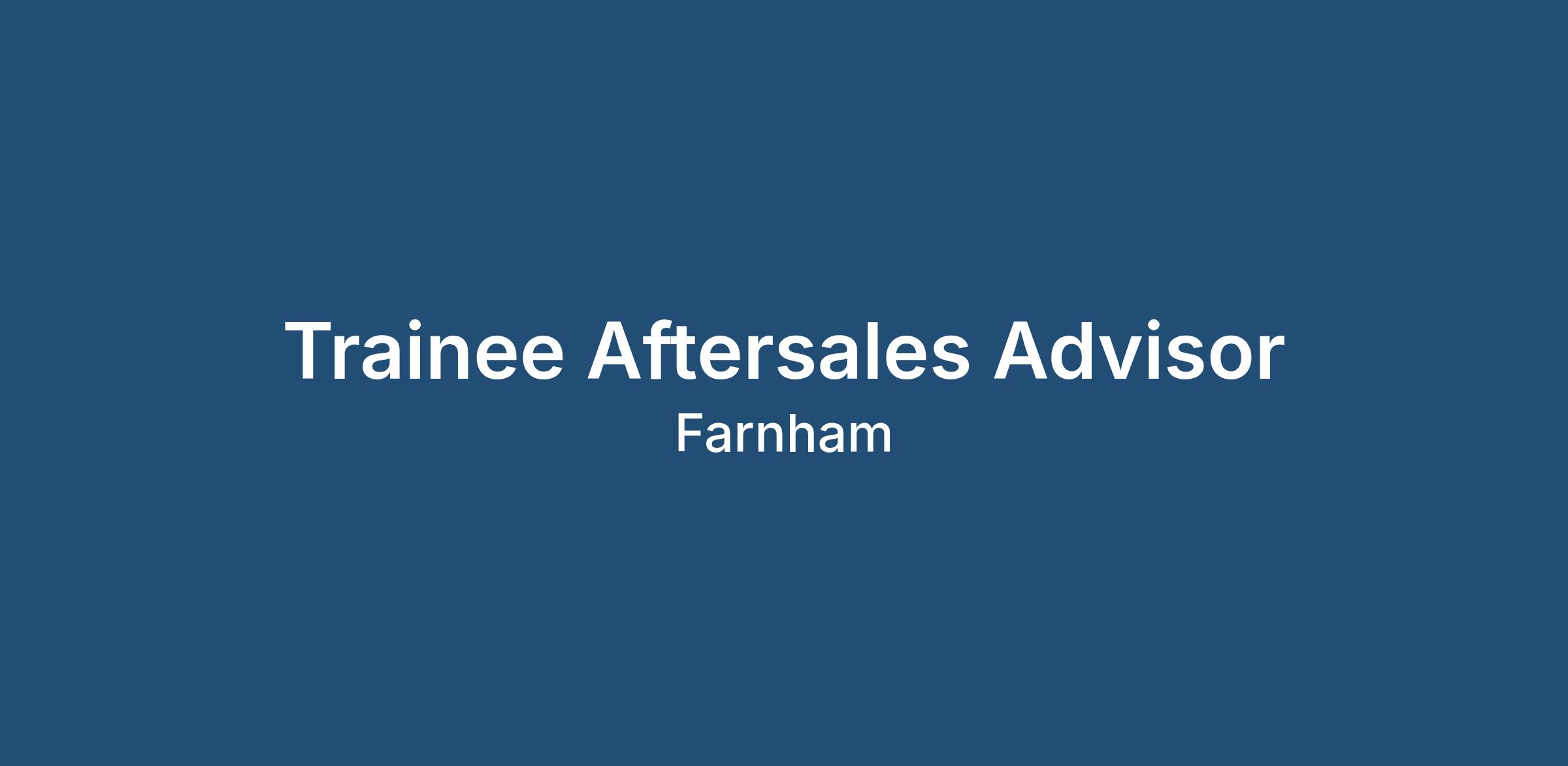 Our client, a main dealership in Farnham is looking for a Trainee Aftersales Advisor to join their dynamic and successful Aftersales team.