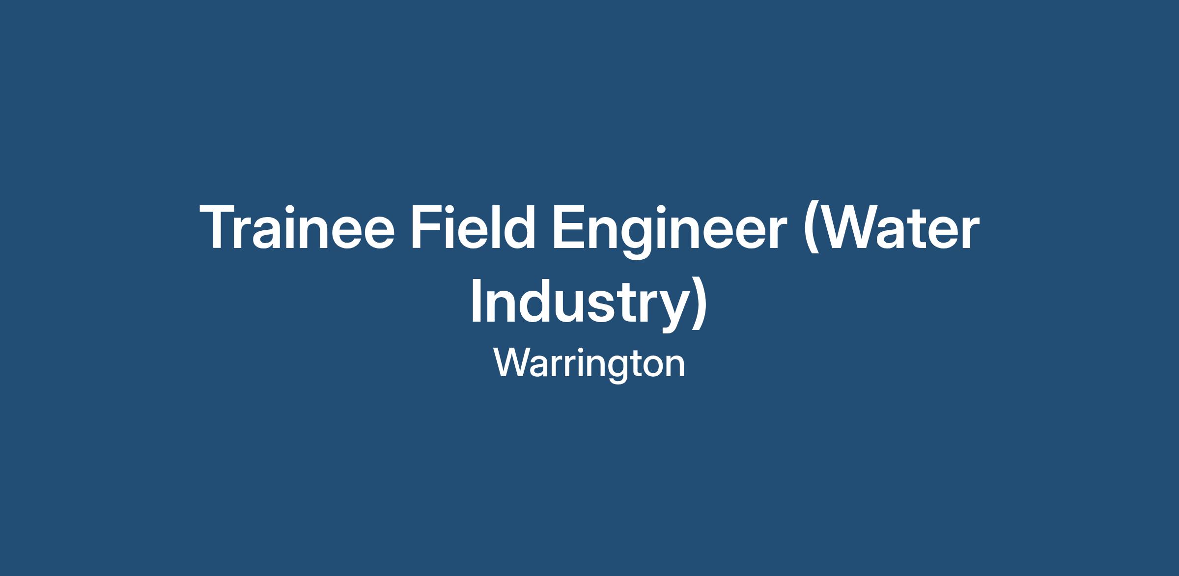 Trainee Field Engineer (Water Industry)