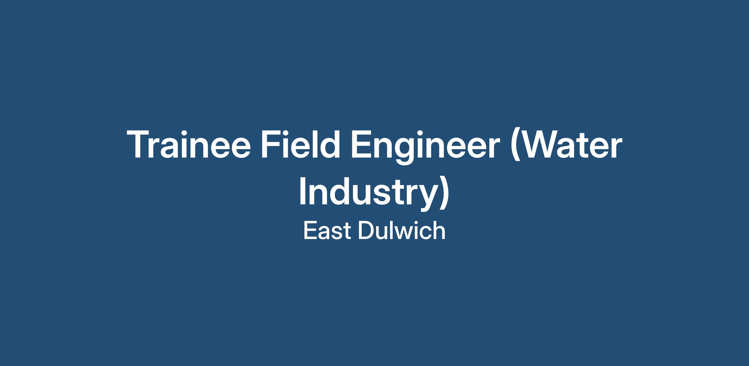 Trainee Field Engineer (Water Industry)