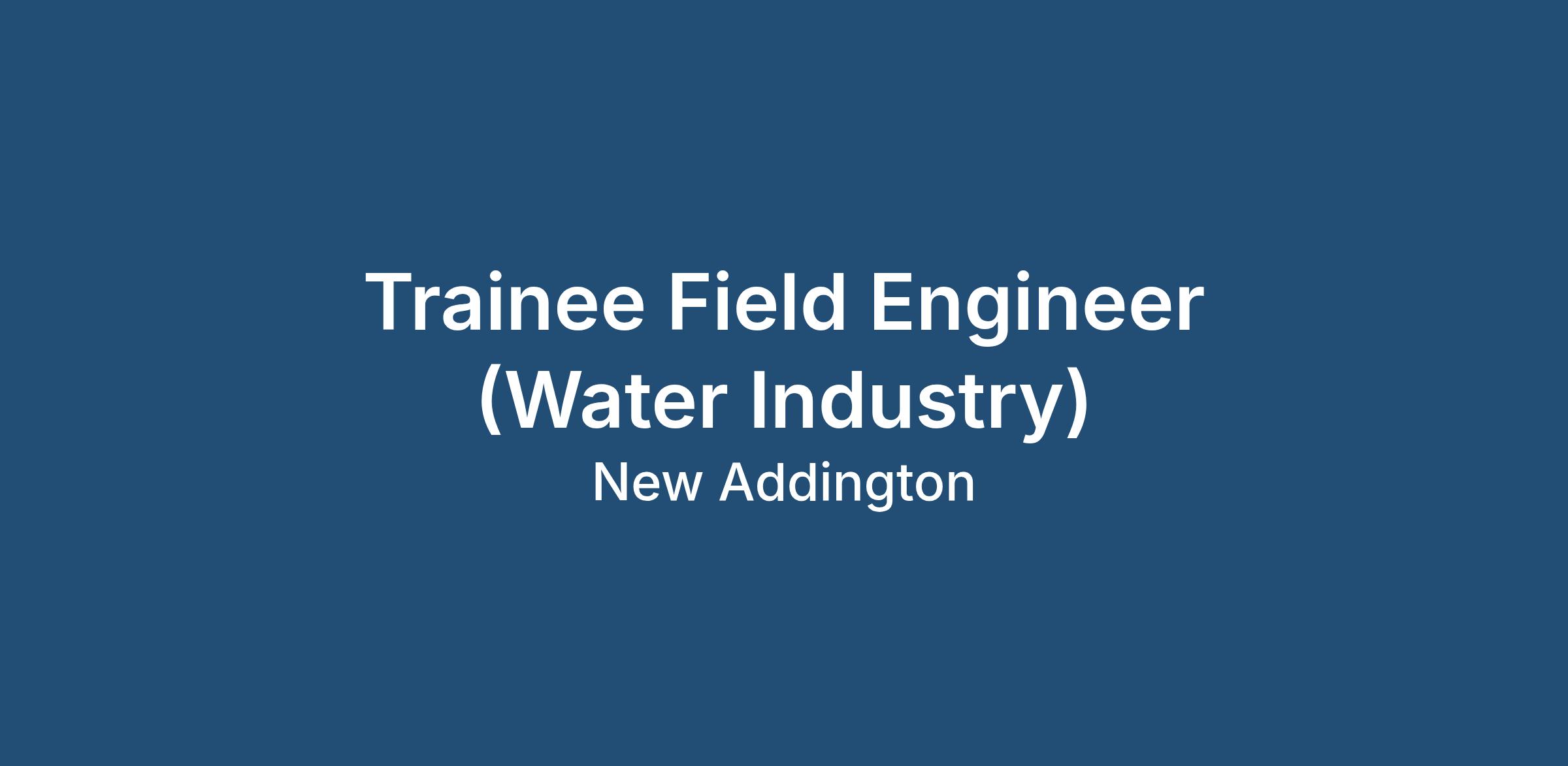 Trainee Field Engineer (Water Industry)