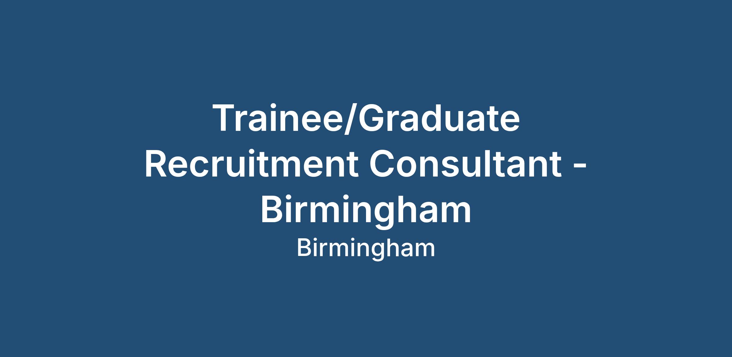 Trainee/Graduate Recruitment Consultant - Birmingham
